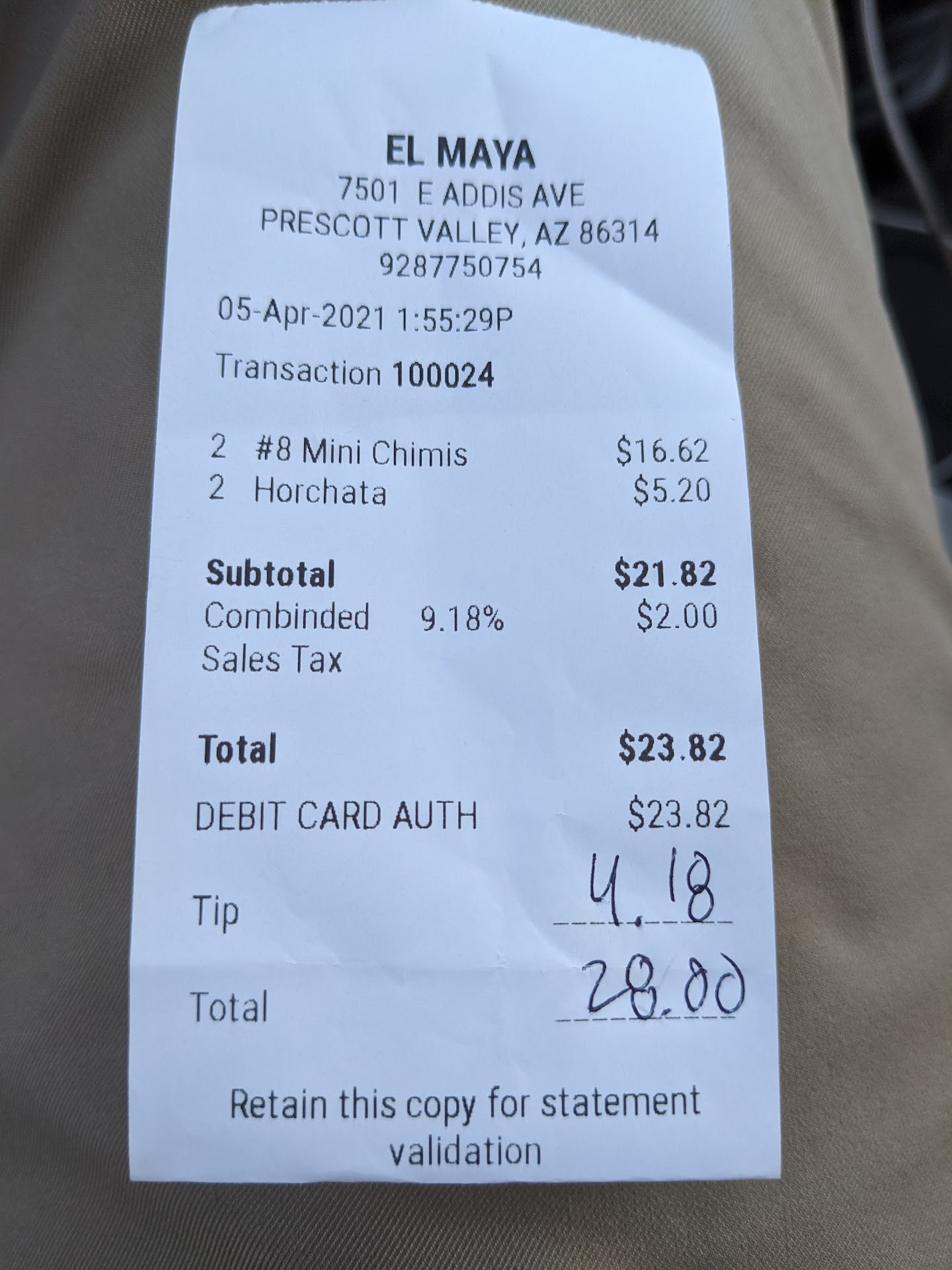 Read moreBeen 8 years since I ate here and now I remember why I didn't come back. The food is not good. The chips tasted bland and not warm. Salsa was decent but the mini chimis we ordered were very sub par. The chicken was dark and tasted almost like out of a can which was kind of gross except the saving grace was piling salsa on top for an average flavor. The waitress was very friendly and she gave 5 star service with 2 star food. The dishonesty with my bill definitely sealed the deal for me to never come back. They slipped an extra .64 cent charge on my chimis and an extra .20 cent charge on the horchatas (which were average)....