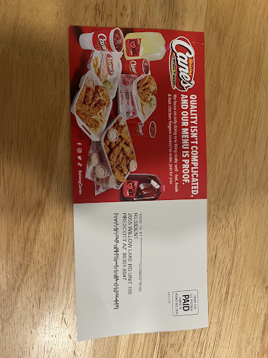 Read moreHow you gonna do us like this Canes? We’re faithful Caniacs. When my Daughter got her first few teeth several years back so we took her to Flagstaff Canes. 1 bite of a chicken finger with a little Canes sauce, her eyes bugged out and she immediately starting shaking for more. Fistfuls of chicken fingers is perfectly acceptable in our house when eating Canes, but here’s what’s not! Below is the junk mail I just received in my mailbox from Canes, now here’s the offense, there is no coupon! No bogo! Nothing! Just “Hey, we’re open”. How you gonna spam my mailbox and not include some incentive? You really think I didn’t know you’re open? “Hey Taylor’s, this Chicken throwdown is on us! ONE LOVE…” WTH! It’s like Aunt D sending cards with no money… Psssh! (Sorry Aunt D we actually appreciate the thoughtful cards, we’re trying to guilt Canes into free crap!) BTW, we just got done eating there and found that in the mail after going. Joking aside, I think the Chicken fingers did get smaller, my wife seemed to agree. Spending $50.00 on 3 Canes meals is tough nowadays on the real! Shrinking fingers and all🤷♂️, it’s still bomb though! 4* for that…