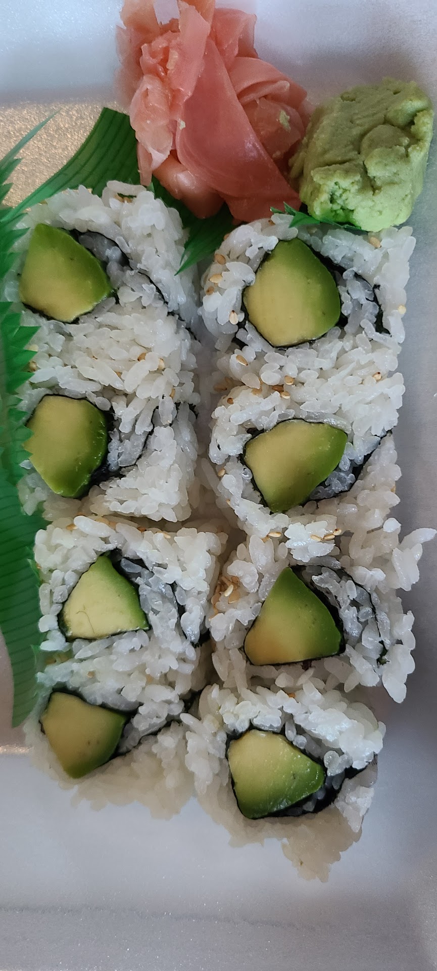 Read moreI called in an order for takeout after being disappointed with Fujiyama - (Four avocado rolls, two veggie rolls). The sushi was very delicious and took them about 20 minutes to prepare. Exactly the amount of time the lady on the phone advised. The price added up quickly after adding to Ramunes and two green teas. All together it was $52 bucks.