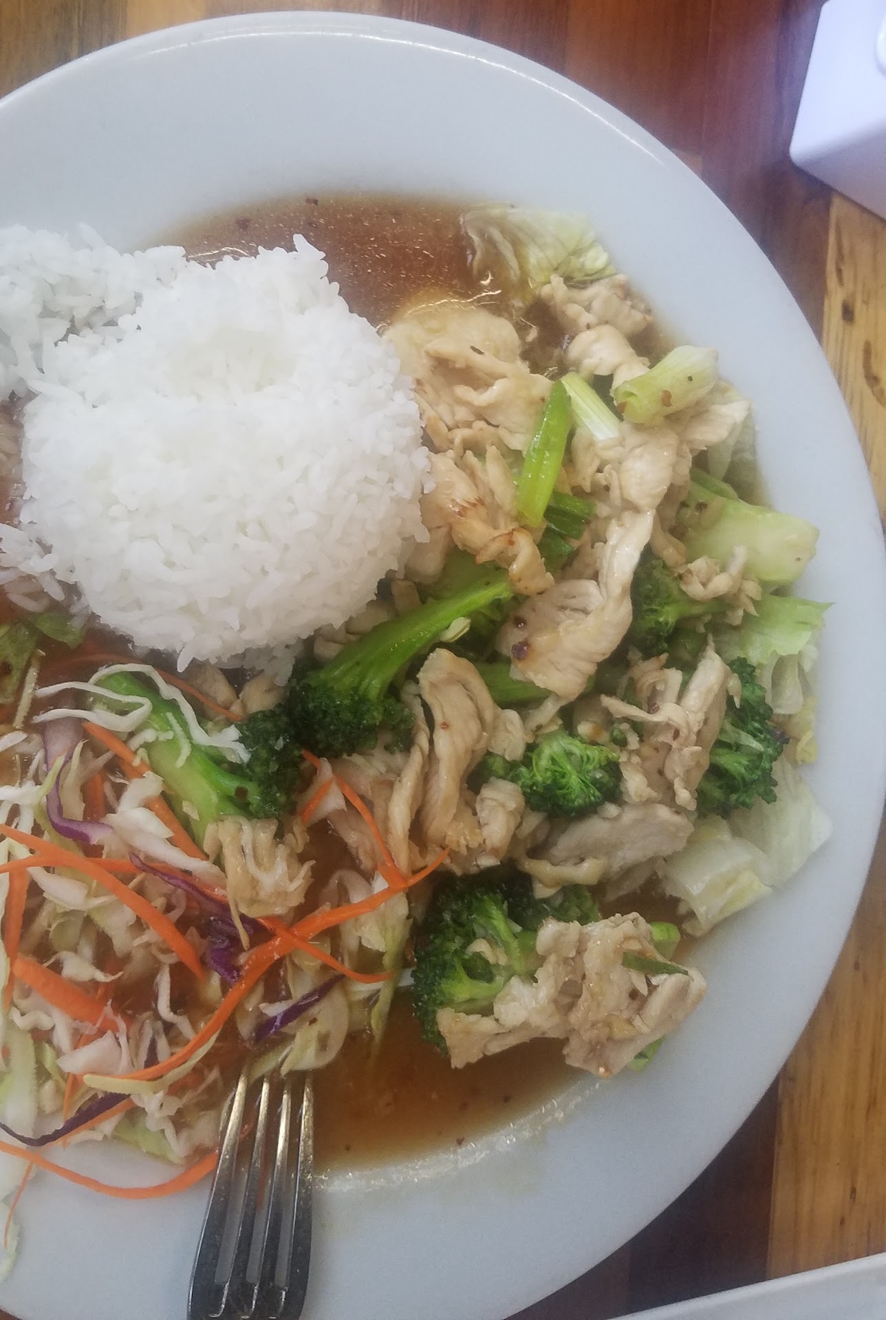 Went here on a whim with about 15 people and the staff was very accommodating. They placed us in the back area with two long seating sections. Only concern with the seating was that the air conditioner was not on... and it was very hot in the back room dining area. Was surprised by how quickly they started serving plates after the order was placed - withing only a few minutes the food was arriving. Ordered the lunch special Pad Kee Mao with a heat level of 4 (which is the hottest they offer) and was impressed with the flavor, perfect level of heat, and preparation. My dish was about $9 as a lunch special. Noticed that the entree my brother ordered was nearly identical in portion size to mine, but mine was a few bucks less. Dont come here with a big group and expect all the food to come out at once, a few of us had finished our food before the guy next to me got his plate.