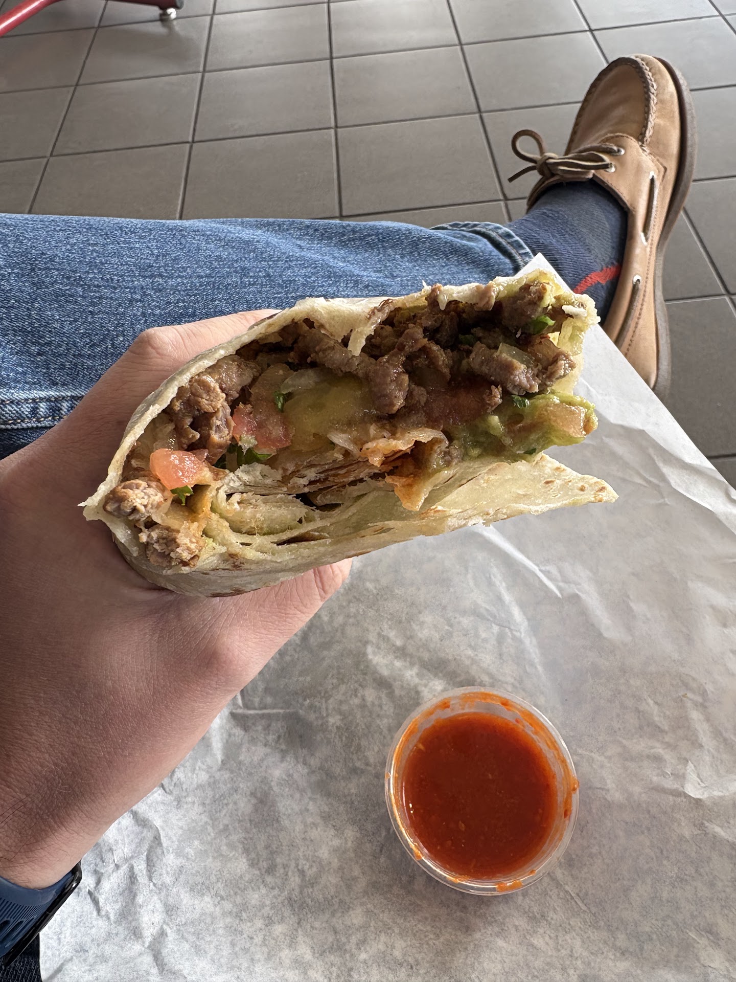 Read moreThis is the first time I ate at this place (next to trader joe's). If I'm not sure what to order, I usually order chicken rolled tacos. I ordered a 3 pc chicken rolled tacos with guac and cheese, extra crispy. OMG!! These were actually the best rolled tacos I've ever had. They appeared to be handmade (which they're probably not). There was an abundance of chicken on the inside and crisp to the perfection. I didn't jump for joy over the guac, but I'm kinda hard to please when it comes to food anyway. Can't speak for any other menu items, but will definitely recommend the chicken rolled tacos!! I had no issues with the staff, as other reviews mentioned....