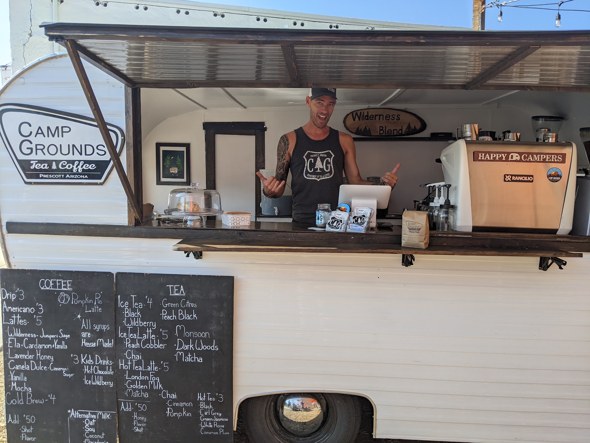 Read moreI happened upon Joe's coffee camper (Jolene) at the Prescott Farmer's market and instantly fell in love with his business model and delicious coffees, teas, and sweets. I kept coming back every Saturday to try new latte flavors before realizing he sets up shop down the street from me during the week. Now, I find myself at Camp Grounds quite often, and can say I've sampled (almost) the entire menu (spoiler alert: I haven't found anything I haven't enjoyed)! Very happy to regularly visit this...