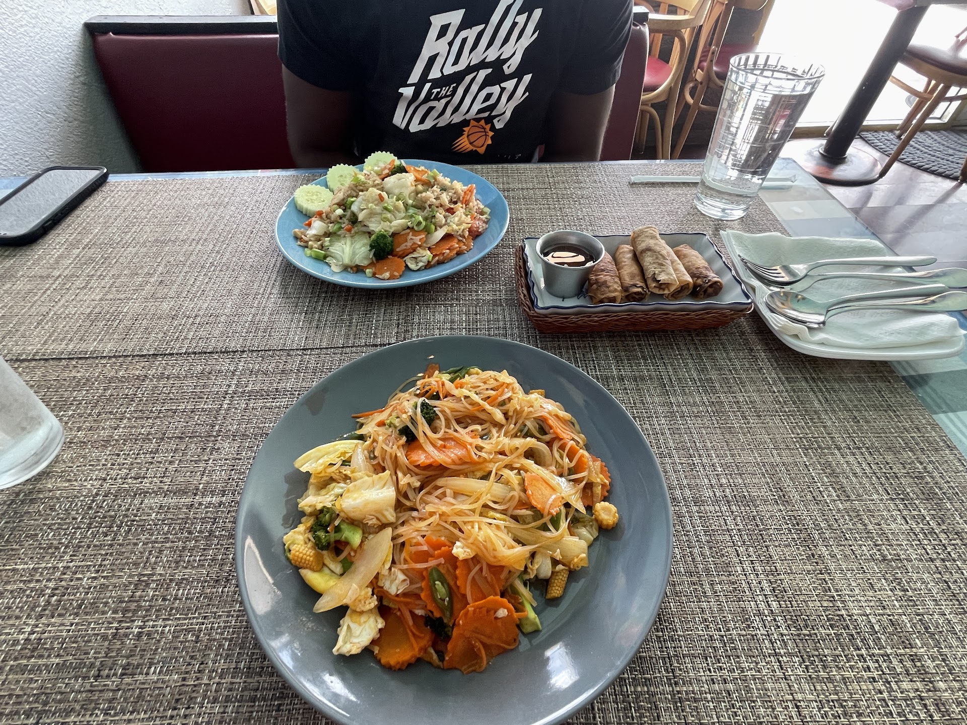 The usual narrative: A gem of a Thai restaurant hidden in a sleepy nondescript strip mall. The first time I stumbled in, a thousand-yard-stare written across my mute face, a very kind woman welcomed me from behind the counter. "Take your time looking over the menu, let us know if you have any questions." The host's warm and patient demeanor immediately put me at ease. I opted for the spicy flat noodle with fried tofu, spice level 4. I was not disappointed with this selection. A meal this good must be savored, eaten mindfully. Every bite astonished me: the tofu was cooked to perfection, complimenting the melding of the other flavors and vegetables. Particularly the fresh basil. Dee Thai Express: Thank you for providing Prescott with a delicious and authentic Thai food selection. Thanks for catering to the vegan and plant-based people in the community. I have been back no fewer than a half dozen times, ordering the same spicy flat noodle, spice level 4. It's time for me to muster the courage to try a new dish. Perhaps the red curry. I hope your...