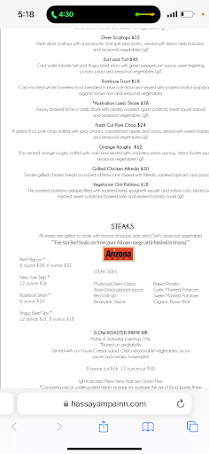 Read moreWe love staying at Hassayampa Inn but their restaurant, The Peacock Room, is such a mixed bag. We had reservations for brunch at 10:30 am and everything from the service to seating was rather slow and methodical. Took a while just to be acknowleded at the host station. Then they had to “prepare” our table. I guess they weren't expecting us to show up. Anyway, their prep did not include cleaning the chairs. I had to wipe off what appeared to be some parmesan cheese. Maybe the previous diners had a Caesar salad. I don't know. Some of it was on the floor too.