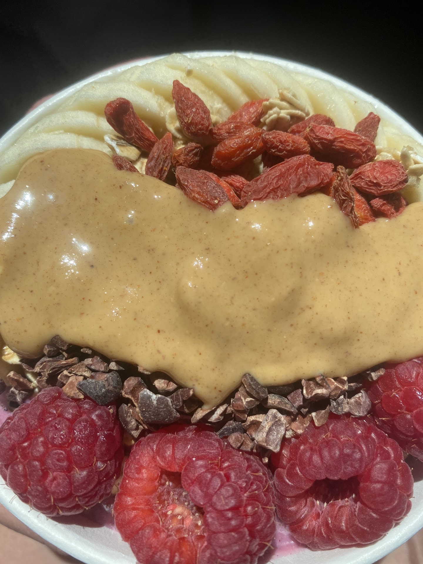 My bowl today is tasty, aside from the insanely thick layer of granola - about a third of the contents. I am paying for something healthy, not a pound of sugary granola. 🙄 I'm so disappointed, as I've been looking forward to this meal all day.