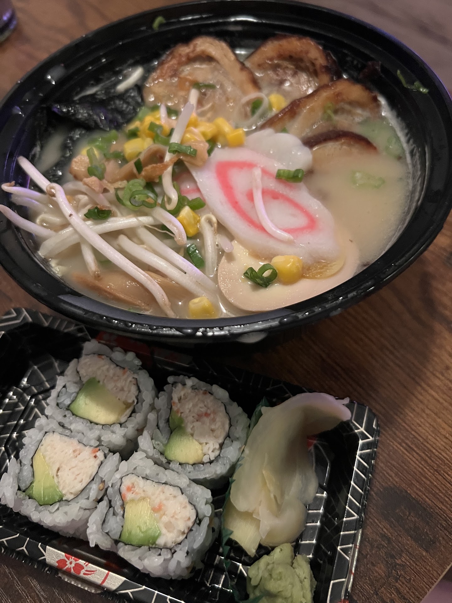 I ordered: tonkotsu ramen California roll medium poke bowl with salmon