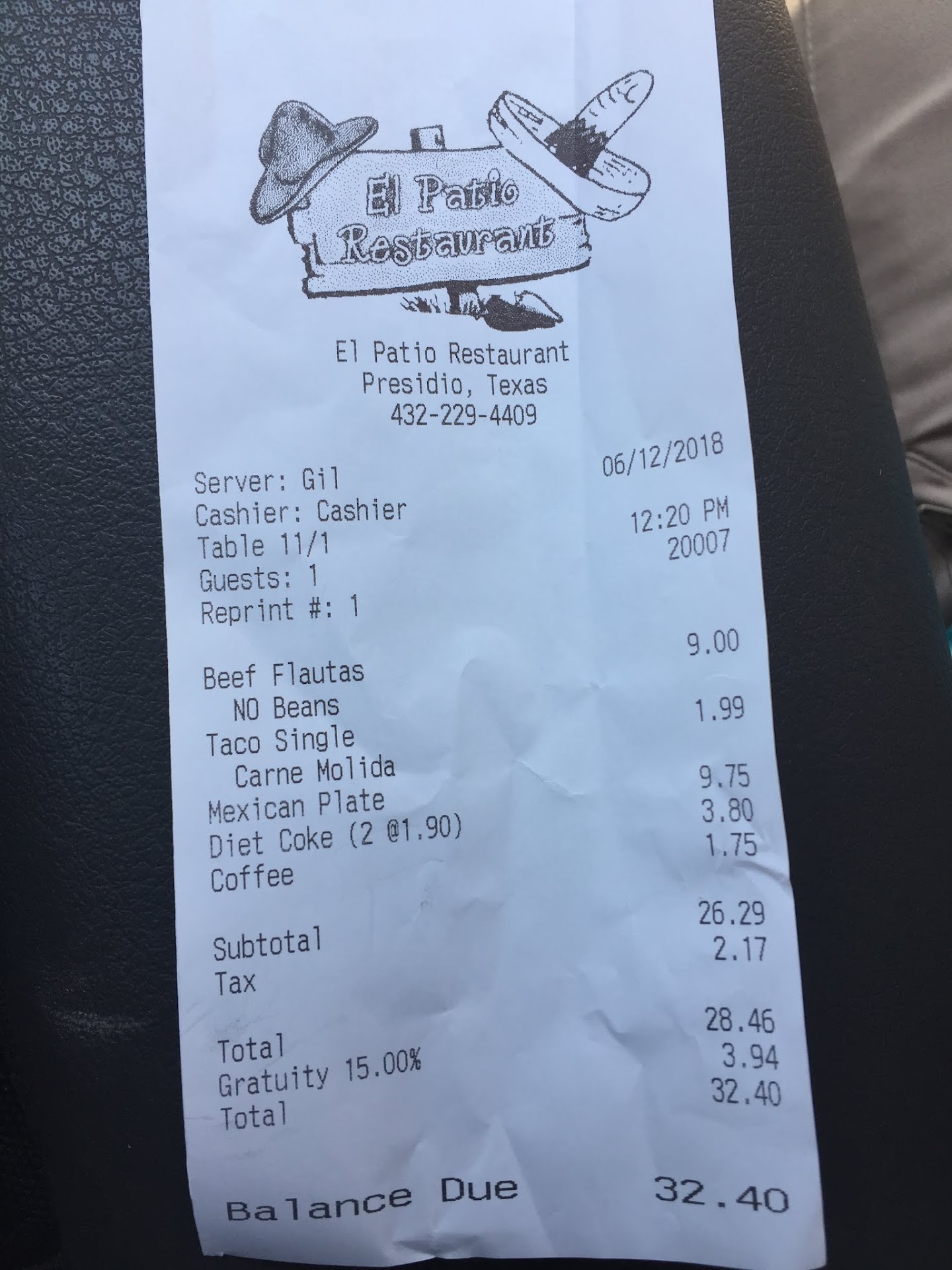 Read moreAvoid this place !!!! last Saturday ( 8/18/2012 ) I waited 20 minutes for a menu and 30 minutes for the food that was cooked in rancid grease. We refused to eat the food, my daughter found a black pubic looking hair in her omelet. The waiter never came back to our table even though we were the only customers there!!! Then the idiot added 20% gratuity to our tab. This guy was terrible, the food was terrible and the flies were so bad that I kept my menu to swat them with. Don’t waste your time and money at El Patio in Presidio, cross the border into Ojinaga and go to Lobby’s, you will get a super meal and...