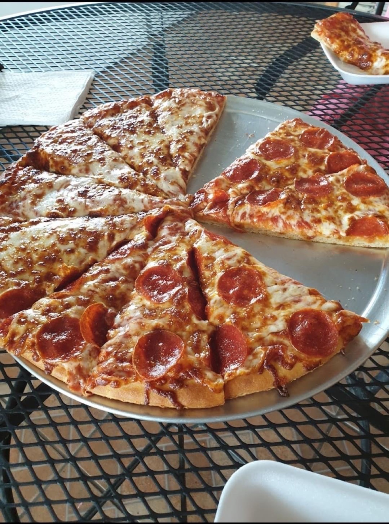We had a large meat lovers and there was enough pizza for two people with leftovers for a snack later. Considering this is the only pizza option for a very long distance on the Texas side of the border, we were really happy. We'll be...