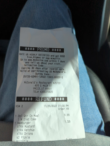 Read moreReview from October 2022 Service at this location is unacceptable. You are better off going somewhere else. Over the last six months service at this McDonalds location has had a drastic decline in quality. You used to be able to place mobile orders and go through the drive-thru and expect to get your food reasonably quickly and have it come out accurate and hot. That is not the case any more. Do not even think about placing a mobile order here. If they remember your order at all they will leave it on the counter until you go inside, wait in line, and ask for it, by then your (almost certainly incorrect) order will be cold. We have been trying to avoid the mobile order fiasco by going through the drive-through. It is extremely slow regardless of the time, but it almost completely stops anywhere near lunch or off-work time. Again, orders placed at the drive through are almost always incorrectly made. Overall food quality is inconsistent too. One day fries will have almost no salt at all, other times they will be standard. Getting a correct drink order is impossible and regardless the soda will almost certainly be flat or have a...