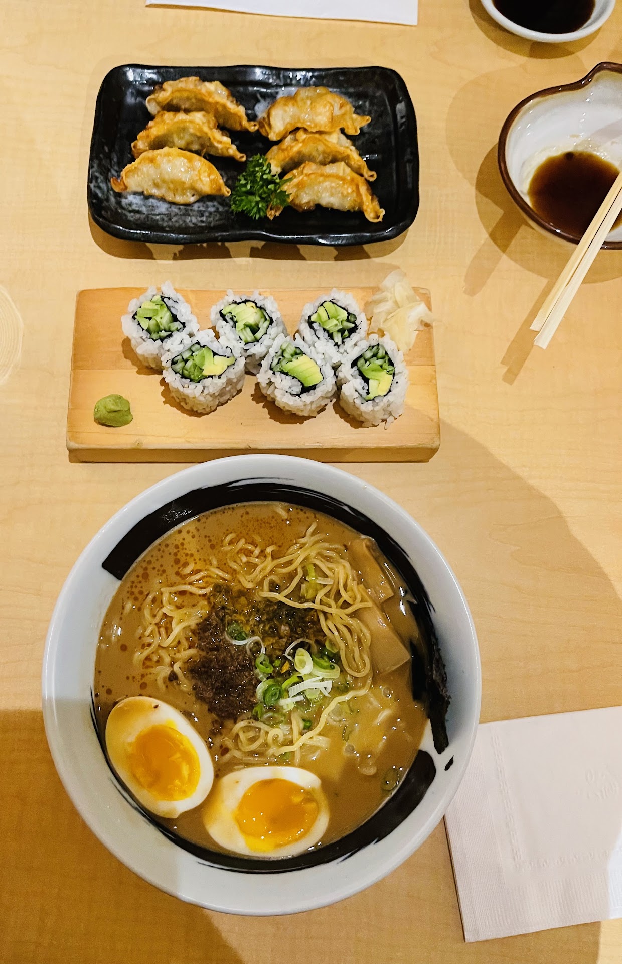 Read moreUpon entering i noticed two tables dining, not very busy yet the food still manages to take almost 20 minutes to come out... Its not like this place is understaffed, theres two waitress and a sushi chef, whats the hold up?.. Also, the waitress (older lady) was extremely rude towards me. I asked if i could change my phone, she tells me there are no chargers in the store. alright then.... later i tell them im paying with apple pay and my phone is at 2% then she says okay i can charge your phone for you! straight comedy.. now on to the food, its your average ramen, nothing special. i doubt they sell enough ramens to make everything fresh so all the broths and toppings are all kept in the freezer because i kept hearing the microwave go on and off. Definitely wont be coming back here, id rather waste my money on other things. Only good thing about the store is the younger waitress, very polite and helped me choose which ramen to order. this experience was so bad i dont even want to bother revising my review, dont make the same mistake as i did, go somewhere else... food 1/5 service 1/5 Also a note to the owner : Ive been in the restaurant biz for a long time and i know not everything can be crystal clean but come on, clean up that stove top you guys boil the ramen in, its FILTHY. you can literally see a thick crust of oil and dried food covering the stainless steel countertops and stovetops. you can do...