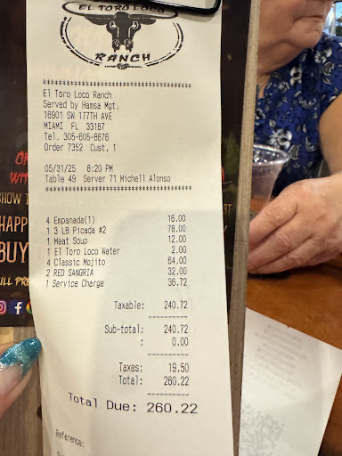 In summary, my experience at Toro Loco Ranch was disappointing—not only due to the mistakes in service but also because of the lack of genuine effort to rectify the situation. For these reasons, I do not recommend this place to anyone seeking quality service and a satisfactory...