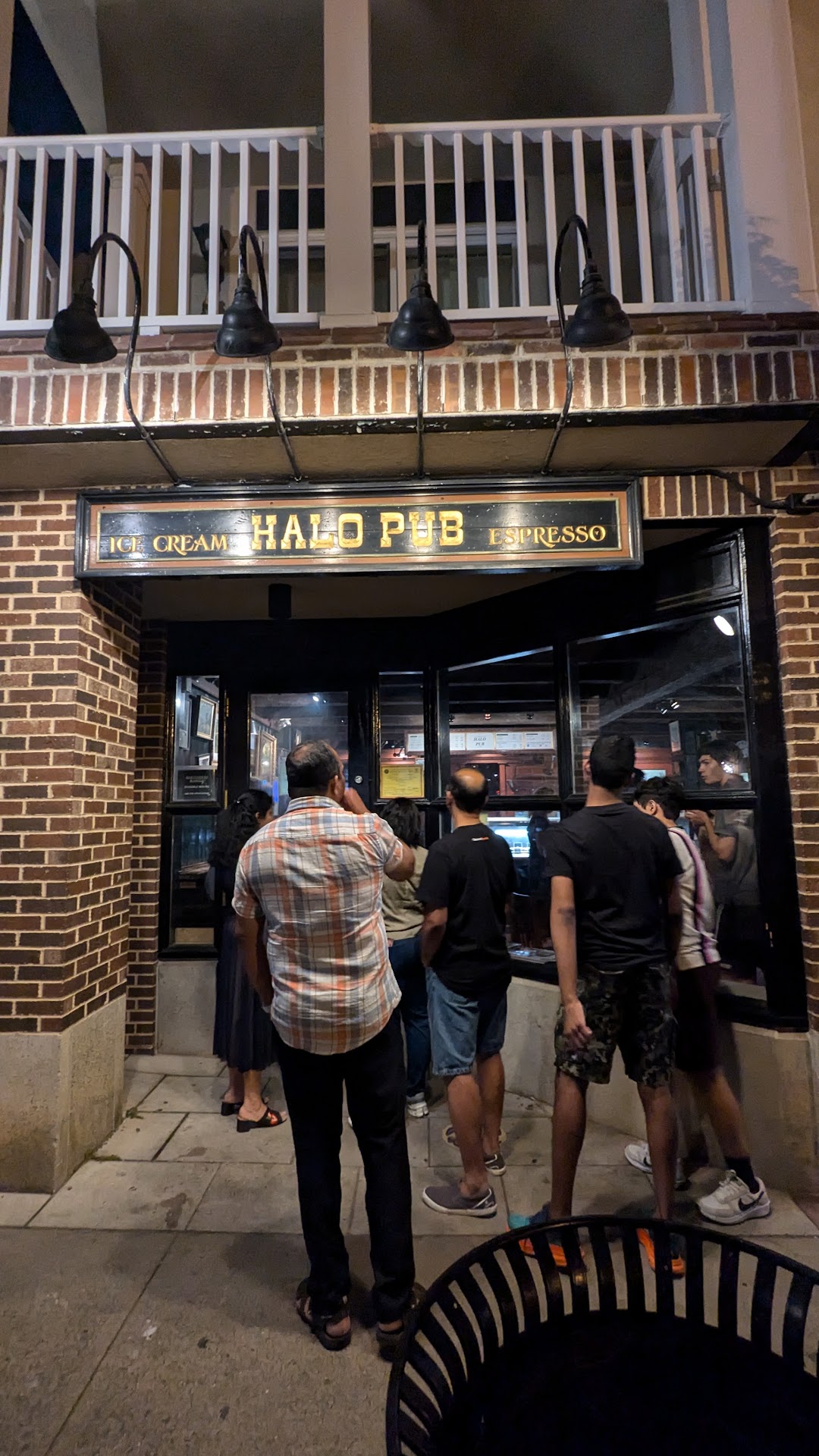 On a recent balmy evening, we decided to treat ourselves to Halo Pub's renowned ice cream. The anticipation built as we approached, noticing a considerable line stretching down the sidewalk. However, our fears of a long wait were quickly assuaged as the queue moved with surprising efficiency. In a mere 10 to 15 minutes, we found ourselves at the counter, ready to indulge.