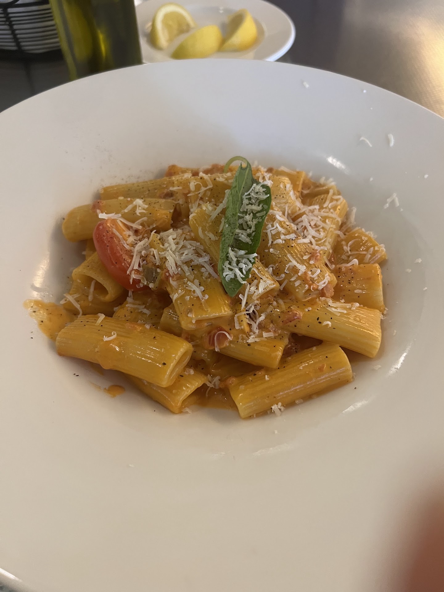 They really are committed to making you experience the delight from true and authentic Italian dining. The specials are wonderful, but some of our favorites are the Duck Confit Salad (comes with goat cheese that goes perfectly with the salad), Rigatoni alla Vodka (sauce is wonderful, and we usually switch the pasta to home-made pappardelle), the lamb on the menu is delicious, and for dessert, we LOVE the warm and gooey chocolate souffle that comes with gelato. We usually get the home-made nocciola gelato that's so reminiscent of the classic gelato from Italy. The nocciola keeps getting better and better too everytime we have it, and it's served in a hard chocolate cup next to the souffle, that adds great texture to the cold ice cream and warm cake.