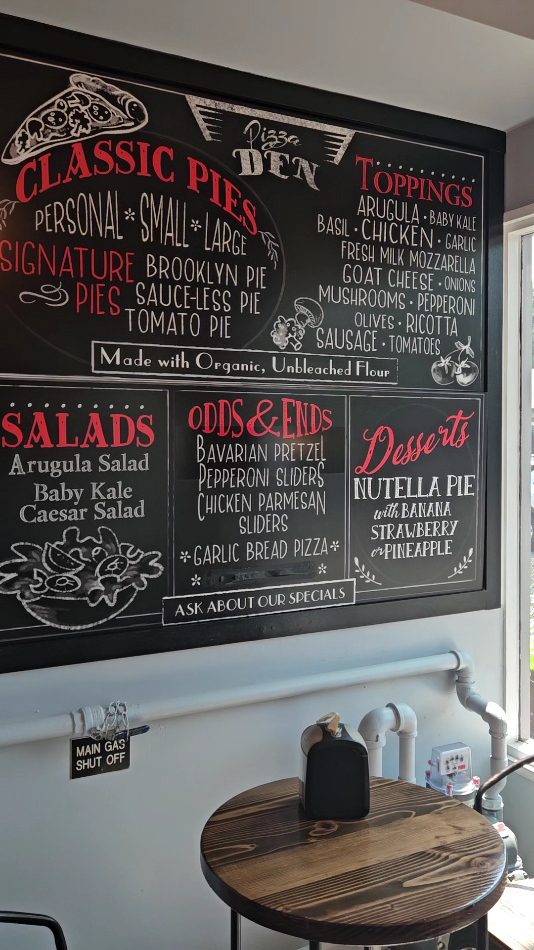 Read moreWhen I was in graduate school in Princeton 20 years ago, this location was called Old World Pizza. The brick oven remains, and the layout is similar, but as good as Old World was, the pizza here is better, in fact, just incredible. I've lived in the Northeast for 21 years, have had the best pie from DeLorenzo's in Trenton (now gone!) to all the NYC famous places like Patsy's and Grimaldi's. Pizza Den's crust is comparably good, high temperature thin, bubbly, crispy. They stock their fridge with high end artisanal Root beers and ginger ales and so forth, and the decor is really nice. I can't believe the food in Princeton has gotten so good, they've really brought the "A" pizza game to town with Pizza Den,...