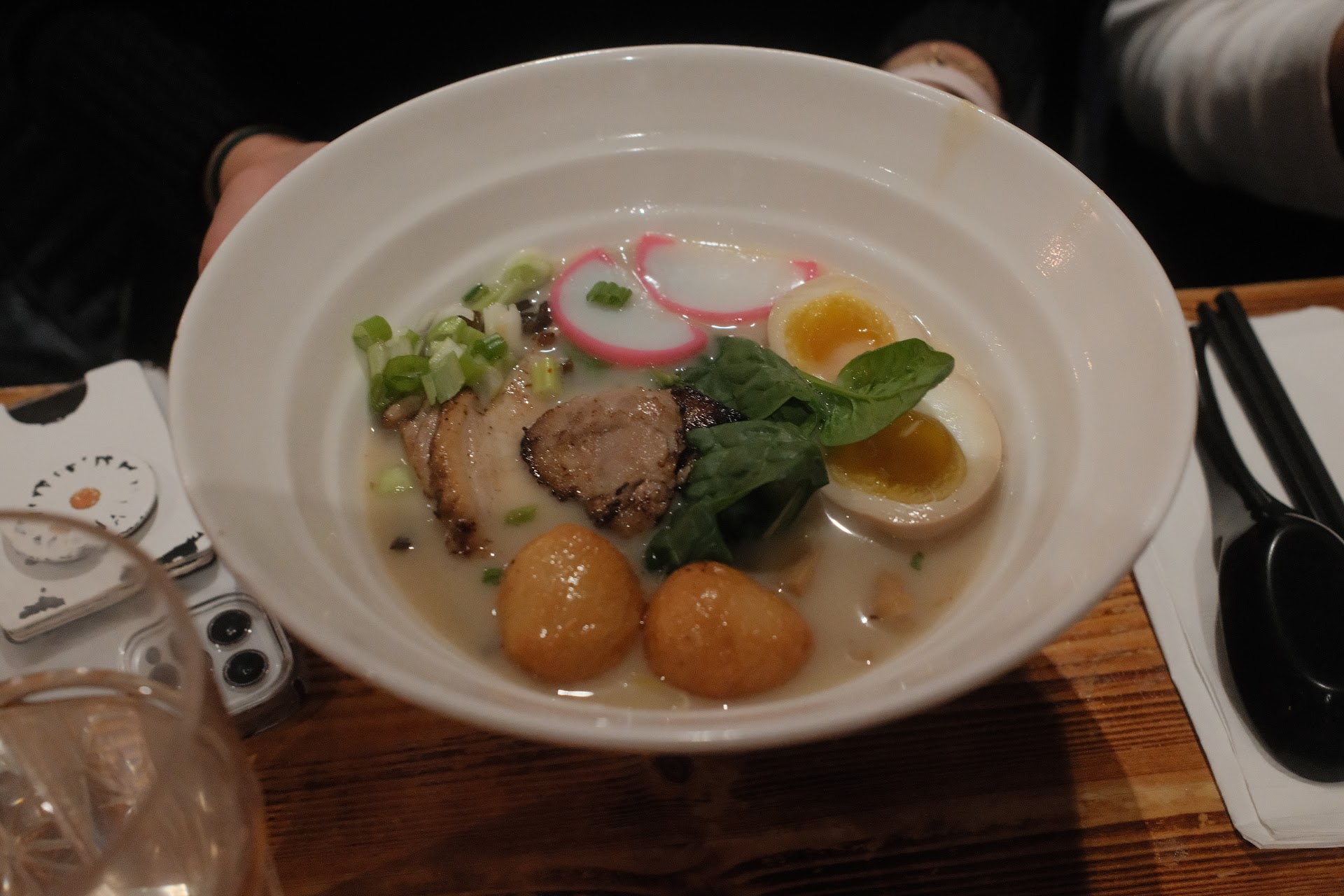 We are tourists, visiting a family member in town so perhaps our accent is not totally American. It started with the waitress laughing in our face (actually laughing out loud) because we did not pronounce the word Ramen correctly. When she managed to calm herself down, she condescendingly asked us if we ever had ramen before. We had, on numerous occasions. We placed our orders and received our food. The starters were ok, it matched the price level so no complaints. But then the ramens arrived. My daughter had a big piece of plastic wrapping in hers. Mine tasted and smelled like it went bad, and three other orders were hit on the top, but cold on the bottom. The waitress apologised for the plastic wrapping and offered to replace the dish. My daughter refused as she lost her appetite. Some time later, the manager came around and asked us if everything else was ok, I told him the truth. The dishes remained on the table untouched. He got upset with us and told us that we must have never tried ramen before. I didn’t seek any further contact with him, I just asked for the bill. The same waitress came back holding an electronic screen with the bill, as I couldn’t see whether we were compensated for the dish with the wrapping in it, I turned to her and asked. Her response was to click on the next page were you choose the amount of the tip. I didn’t argue any further but I clicked on no tip and paid the 175$ bill. She got upset again and left without ever providing a recipet. Not sure if I ever had such a bad experience...