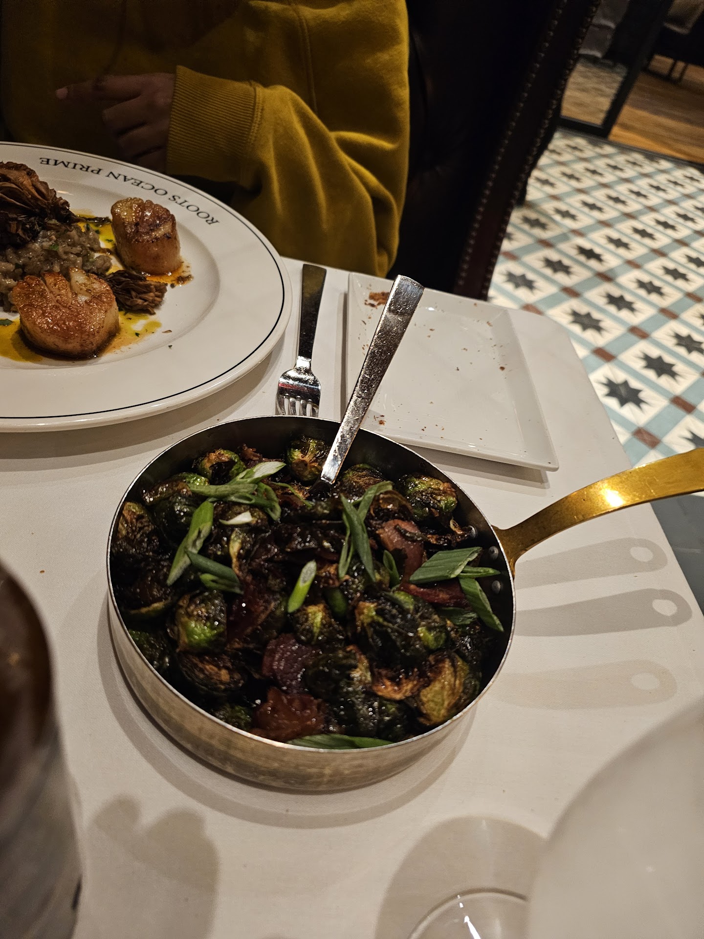 I ordered the 20 oz dry roasted steak, brussel sprouts, and the loaded baked potato.
