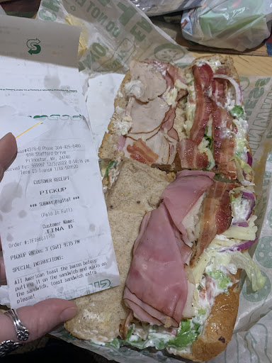 Let me start this review off by saying I eat the majority of my meals on the go...and have frequented this subway location several times. I've had my fair share of average and even a few below average experiences, but nothing too good or bad to jump on the internet and write about it.....until today. The sandwich that I received today has got to be the finest example of subway perfection I have ever laid my eyes on. We are all flooded with marketing and advertisements 24/7 with photos of menu items that are, let's be realistic, very rarely what you actually receive when ordering. The sub I received today "The Beast" is as close to picture perfect as I have ever seen. The meat and cheese is layered and stacked with care and precision, and the vegetables are neatly placed between the perfectly sliced italian herb and cheese bread. Obviously the staff at the Subway location on Stafford drive in Princeton cares about presentation and professionalism. To the staff, keep up the great work, to the sandwich artist that created this masterpiece....THANK YOU.....you have made a regular customer out of me!! Bravo...
