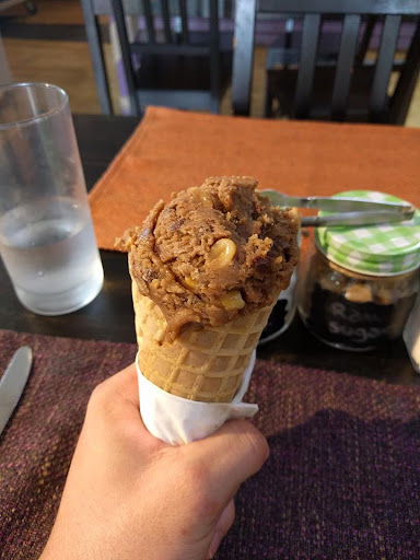 I ended up trying their Peanut Cluster Raw Cookie Dough in a Waffle Cone, this tasted really good, I kept eating it and my brain was thinking it should be cold but it wasn't so I think next time I would prefer it as a sundae however it left me wanting to try the other flavors which is a good thing for business. I'm not a huge fan of sweets due to working in a bakery and testing products a lot.