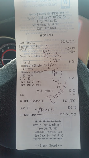 Read moreHad to come and leave a review and see i did but no explanation. Simply the best customer service at fast food in Princeton WV. I thought so a year ago and looks like its still true. Receipt named someone named Hunter but older lady at near close that did not give any attitude about 15 min b4 close like u get everywhere else in town. Food unbelievably hot n fresh . Didn't forget not even 1 napkin. See kids it is possible to work fast food all day still end with a smile, good customer service and overall being a decent human being. Now Wendy's crew near Princeton hospital please please go share your knowledge with other one in town and the rest of the Princeton fast food industry that has the attitude "customers don't matter"..thank you for being a place where...