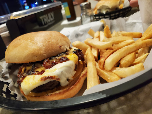 Burgers were great - well seasoned, well cooked, and definitely made in-house. Fries were mid at best, a little soggy. Place was dead on a Saturday night, which was surprising as our food took quite a while to arrive. One bartender was quick to set us up with drinks but took FOREVER to get back to us, and really didn't check in at all. The other bartender was wandering around looking absolutely miserable and didn't say much. Both staffers stood and joked about things on their phone while we were waiting for a drink refill and our check. Man at the other side of the bar was going off about how dumb he thought #blm is, and another young kid was joining in conspiracy theories, which ruined the entire atmosphere. Overall I don't think I...
