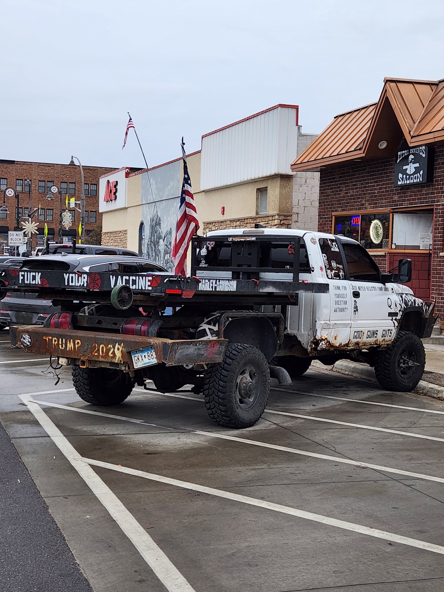 We stopped here for a couple of drinks, sat at the bar and the bartender, Kelly served us. She was serving the other patrons at the bar but would not acknowledge us when we wanted a second drink so we left. We don't know what her problem was, we were minding our business. It was our first time here and last. Sometime after this visit we were in Prior Lake and noticed this truck was parked illegally next to this place. Apparently they cater to trump trash....