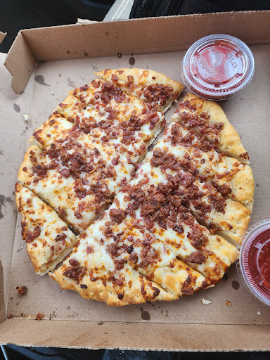 I have mixed reviews on this pizza drive thru. Ive had great and ungrate visits. The consistency on product is lacking. Sometimes I can go in and have a good normal medium thick pizza other times I'll go and the crust is thinner than a paper plate. Don't recommend ordering extra sauce or extra cheese. As everytime I order I never get extra sauce it's barely any sauce. Same with the cheese when I order extra there is barely any its as they just put all my toppings on top of the Itty bitty sauce then put cheese on top. I'll try sportys or just go out of town...