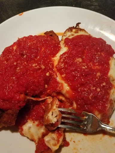 Ok I am not a big fan of Italian food but good Lord was this place amazing, The service from the very second we got there was perfect, everyones very inviting the place feels like your home the vibe was fun and relaxing at the same time. Now the food...You know when somethings so good you just keep eating even though you know you should stop for the sake of the button on your jeans? Yea thats this spot right here. No joke i can almost hear my jeans about to pop open from how stuffed I was lol I just kept eating though. The first time i came here it was a birthday and we got a free slice of cake and i hate cake but this one was so good it had little chocolate chips in it. The owner gave us a free drink my honey grabbed a beer and I had a martini that almost got me drunk lol it was super strong but very good. Guys the food here its just UGH i have no words all I know is on my wobble out to my car with my take home baggie im thinking about what I plan to get the next time i come. So I have never ate calamari with the "works" which was hot peppers and blue cheese and you guys I tell you if theres a finger worth licking at a restaurant its the ones you used to grab those bad boys. I have come here twice now and to be honest i plan on a return often especially now that I am a local. Great food, great people and fabulous service. Just a little advice though. Wear something...