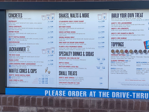 I just had THE saddest banana split in my life from here :( I ordered a banana split with hot fudge and a concrete. Had to wait in drive thru line (we have always waited in lines at any Andy’s location we’ve been to, so this isn’t an issue for us) and when I went to pay was handed my ice creams. If I wasn’t so busy trying to put my card back in my bag without dropping it, I would have noticed the slush excuse of ice creams I was handed… not to mention my split had no nuts or strawberries to be seen! Don’t get me wrong, I’m aware that hot fudge is going to melt ice cream a little quicker than normal BUT this was like a pool of meh! I paid $18 and should have just gone to McDonald’s for a mediocre cone. This location needs to get there act together! Ice cream should not be made that far in advance when you know people are lined up in a drive thru…We have been to a lot of Andy’s locations and it is a highlight of my stepkids visits to our house and had been a staple treat in our household… but I won’t be coming back to this location, 5 minutes from my house or not. Wish I had...