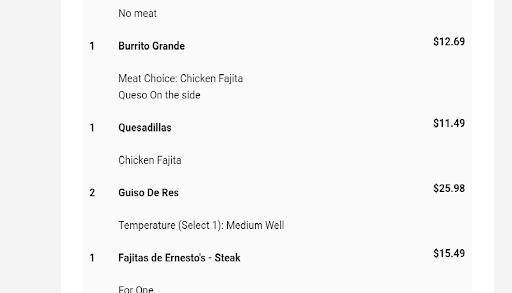Read moreMy wife, my parents, and I went to your Ernesto's restaurant in Prosper tonight and it was by far the absolute worst experience we have had in quite a while. We have been to the location in Pilot Point since it is close to my parent's home once a month for the last 5 years and have always had exceptional service, great food, and a pleasant time. This location in Prosper was awful. We walked in around 8:10 pm which is more than enough time before closing to still want a good experience. We were seated in a back table in the front section and forgotten about. It took us 10 minutes for the bus boy to bring us chips and salsa and when he did, he only brought three. It took another 5 minutes after we had been trying to wave someone down to get someone to come and take our drink order. There was plenty of staff there, they were just all very blatantly ignoring us talking to each other toward the back where the POS machines are. Then another 10 minutes later a different server took our food order and we asked for salt (since there was none on the table) and more chips and salsa since we had been empty for quite a while and a man that appeared to be the manager brought chips to us. When our food finally arrived they made us aware that they didn't have charro beans anymore so they substituted them for refried. Okay no big deal. Then we asked for sour cream and my wife's beans since they were forgotten and the waitress came back several minutes later with no sour cream and said you had run out. My wife ordered the brisket tacos and they came out with no peppers like it says it comes on the menu. How does a Mexican restaurant run out of sour cream, charro beans, and poblano peppers??? The meat for our three orders of fajitas was cut into extremely large chunks and the brisket on my wife's tacos was huge chunks too that had not been broken up and full of huge gobs of fat and the tortillas were a pasty mess because they were so soaked in grease and had obviously been sitting for quite a while. Her plate had dry, crusted, old food on it from a previous diner and so did my fork. We paid our bill and left and when we got home my wife looked at the receipt and I had been charged for a large margarita when I had ordered and received the small. I do not at all feel happy knowing I spent a whole $67.14 tonight on our meals before tip. This is probably going to be the last time these regular customers for several years will be dining with...