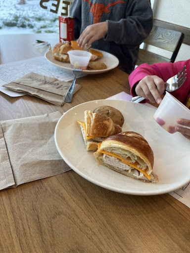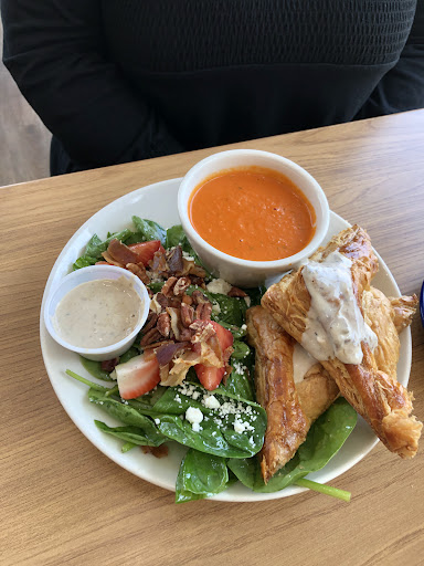 Ā Ā Ā Read moreWith many of our familiar restaurants closing, we took the recommendation of relatives who ate here and had a very good experience. After a long day of appointments, we were up for someone else to cook, but didn't want fast food, just a decent meal at a reasonable price. We arrived before 5pm, early to eat for us, but we also didn't want to deal with the later traffic. After we made a loop on Preston because we missed the entrance we entered the nearly empty restaurant. There were some people finishing up and we were unsure of how exactly it worked. As you walk in, there are printed menus to the left of the line entrance. You place your order at the register, you are given a number on a little metal stand, cups if you order a cold beverage, and you choose your table. They have a variety of options for seating, regular height wooden and metal tables, a section to the left rear with cushioned bench seating for half of each table, a few seats at a counter with stools past that, and pub style tables and chairs. We sat inside, but there is also a very large shaded patio, and restrooms, but we did not utilize either on this visit. They have a glass dessert cabinet near the register so you can see the amazing delights for later. Note they do ask for you to choose a tip, or no tip when you pay, so consider what you feel is appropriate to have your food brought to the table. You do not have to bus your own table. They were not making the beef and parmesian potatoes when we visited, so we had one Quiche Lorraine, one of us chose the "Pick 3" with a full French dip sandwich ($2 upgrade for a full sandwich), plus two cucumber, watermelon and feta salads. The salads are seasonal items, and come in porcelain cup-sized bowls. The quiche was tasty. All of the flavors came through and the crust was not too tough, or too soft. It comes in an aluminum pie tin, but it was not cooked in it, so you can slip it onto the plate to eat it, which is nice. The French dip was very good, and they made sure the meat was done well, my preference. The au jus was flavorful, but I will ask for extra horseradish sauce the next time for the sandwich as there was barely enough on it this time. The baguette for the sandwich was not too tough, or crispy, so you could get a full bite of all of the ingredients without fighting through the bread. The salads were good, sweet watermelon and the contrast of textures with the crisp cucumber, and tje'and the feta, but the cucumber could use a bit more dressing. Compared to a similar salad at California Pizza Kitchen, taste wise, this could use a splash more dressing. All said, we had the easy dinner and also washed it down with Mango unsweetened tea which was refreshing. We will definitely be back to try other items from breakfast and lunch, to entrees. We don't know what it would be like at peak times, but there is a lot more seating than you would expect, so standing in line for your order would be the only catch. We will have to see if you can pre-order to eat in, to make it a bit easier, especially when standing for long is more taxing physically. The staff was friendly and efficient...