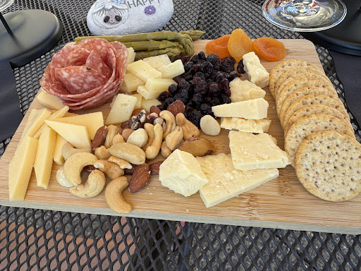 And the charcuterie board… wow. Bonnie prepared the most beautiful spread we’ve ever had at a tasting. It wasn’t just delicious — it was art on a board. A thoughtful mix of cheeses, meats, nuts, dried fruit, and crackers that paired perfectly with the wines. You could see the care she put into every detail. Honestly, when Bonnie spoke, the whole patio seemed to quiet down just to listen. That’s how much presence she has.