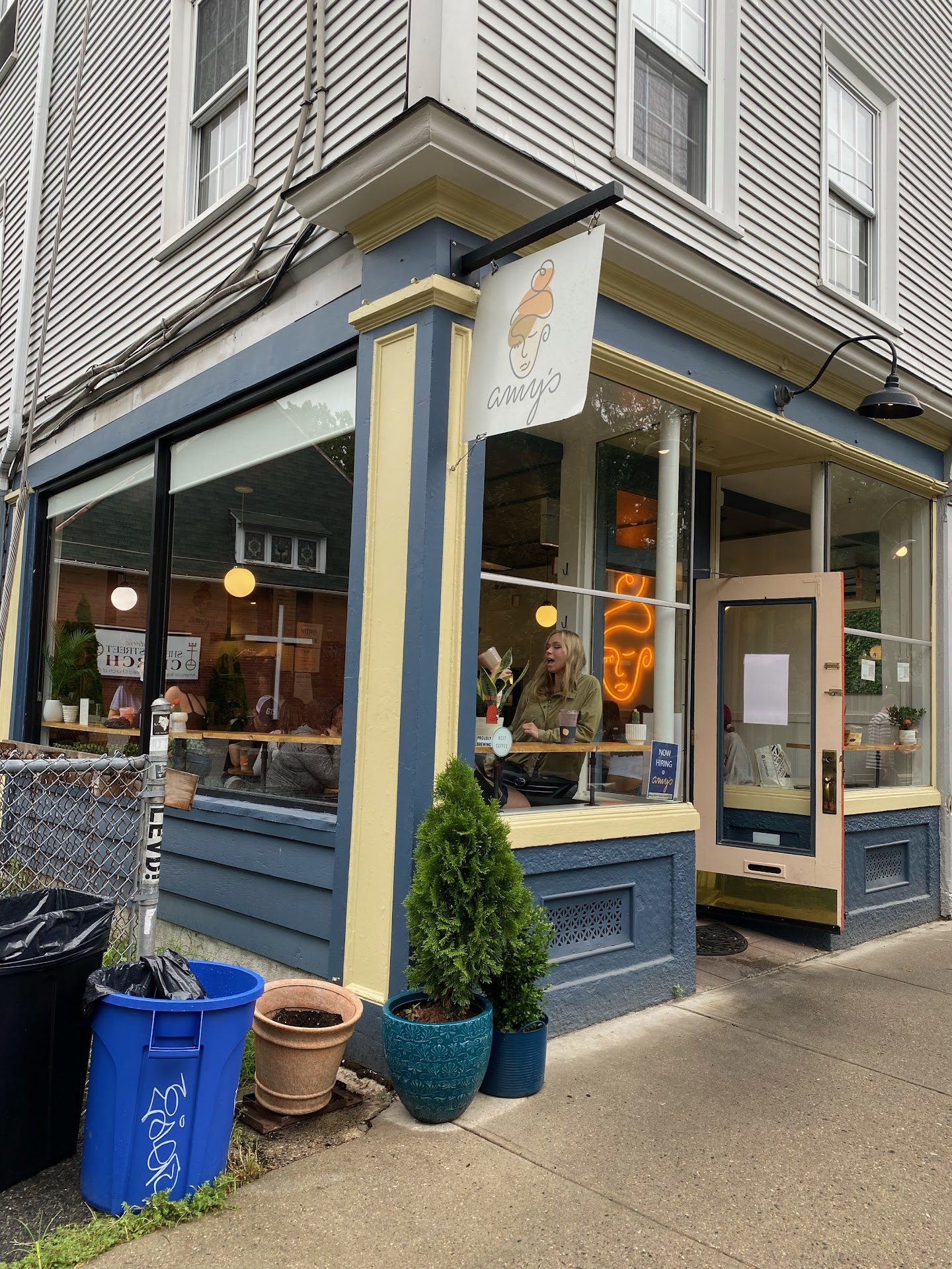 The service staff is very dedicated and hard working, but when the busy period hits, they lose focus on simple but important things like emptying trash cans, cleaning the tables and seating areas, etc. They are forced to turn all their attention to the frenetic order fulfillment process generated by the faulty kitchen process. The staff must yell out names when orders are ready… this is annoying and undermines the desired “low key cool vibe” that attracts people of all ages to what really is a great place.