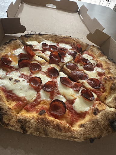 Let me be honest: by the time I got home, the pizza had cooled down a bit (thanks to my AC and an unfortunate accident delay on the drive 🙃)… but even cold it was STILL entirely delectable. That says a lot. The crust had that perfect wood-fired texture, the cheese was quality and generous, and the pepperoni had the right amount of crisp and spice.