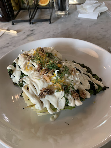 Although my friend loved his scallops, my steak was very well done, hard to cut, and tough. The "fries" were absurd very thin shaved fried strips of potato that one could neither stab with a fork or scoop up. They were neither fries or chips which was sad because I would have enjoyed either much more. I've never been sure why anyone likes broccolini, so I won't rate that in case someone loves it (I'd never include it on any menu if I were choosing). I'll have to give them another try since It does get good reviews. If you are there, avoid the steak, the grilled little gem, and any version of "fries" that they say they are serving. Being fancy shouldn't mean forsaking good and...