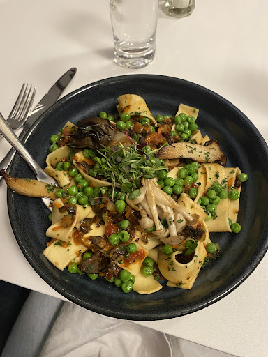 I’m not sure it would be worth eating here if you weren’t already staying at the hotel. The small menu had a good amount of variety, but the descriptions provided were a lot more promising than what was actually delivered. I ordered the papardelle bolognese (which I believe was one of, if not the most expensive items on the menu) and was thoroughly unimpressed. It was a vegan dish that lacked flavor and the pasta, which I’m assuming was homemade, tasted over cooked and was difficult to chew. I ended up eating not even half and didn’t bother bringing the rest back to my room with me. Someone else in my party ordered the prosciutto and fig flatbread, which was yummy but absolutely should not have been called a flatbread. The dough was so thick that at some points we had to cut the pizza with a fork and knife because we couldn’t bite through it. The calamari appetizer and fish and chip entree were both decent. Our waitress though, I believe her name was Kim, was phenomenal, very kind...