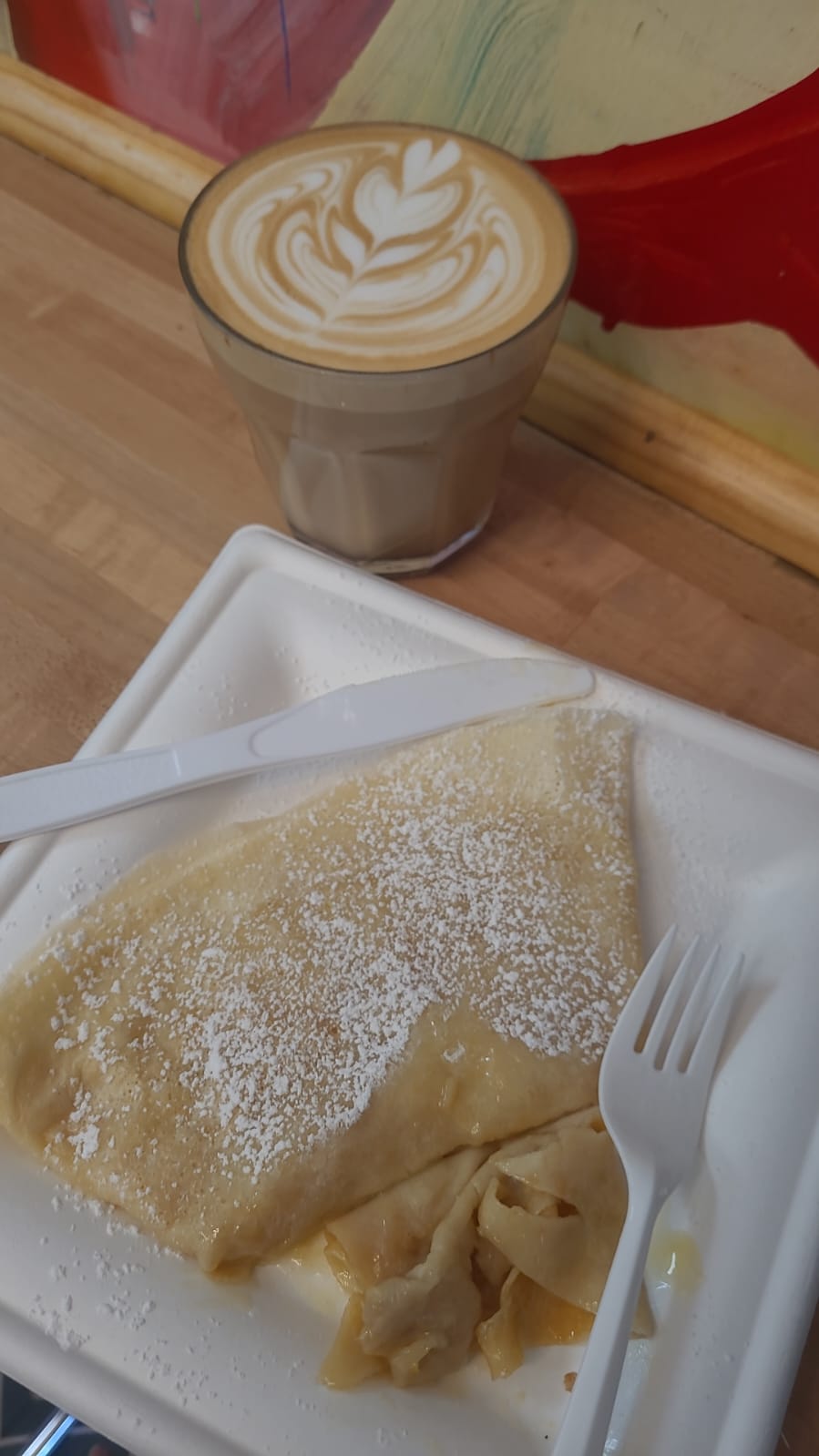 It was okay. Crepe was a bit undercooked and just lacking in presentability. Latte was pretty didn't taste that great though. Bit overpriced at 13$ for this. Also the inside is super small and a bit awkward to be so close to other people but there is seating outside.