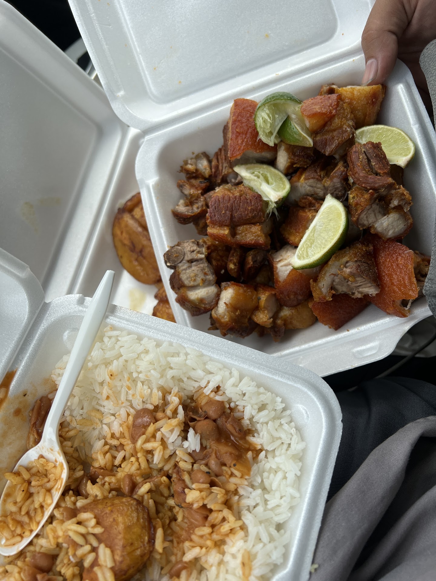 Tender ribs, fish bacaro, tripe soup, beef in spicy tomato sauce (no idea what it's called but man, I loved it) rice and beans and fresh fried plantain, 2 people for $30 and we had leftovers...