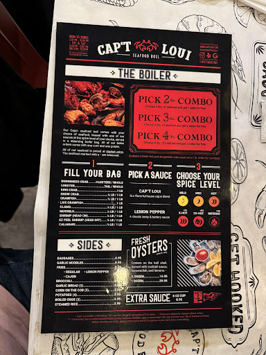 Weâre pretty well-versed in seafood boils so it was nice to see that there was one available. We decided to go with a pound of headless shrimp and half pound of black mussels and half pound of snow crab legs with the captain Louie sauce, at medium level hot. We asked to sample the extra hot and the xx-hot, since we werenât familiar with their spices. Definitely loved the hot! We ended up tossing in the hot into the bag, mixed it up, it was a great mix!