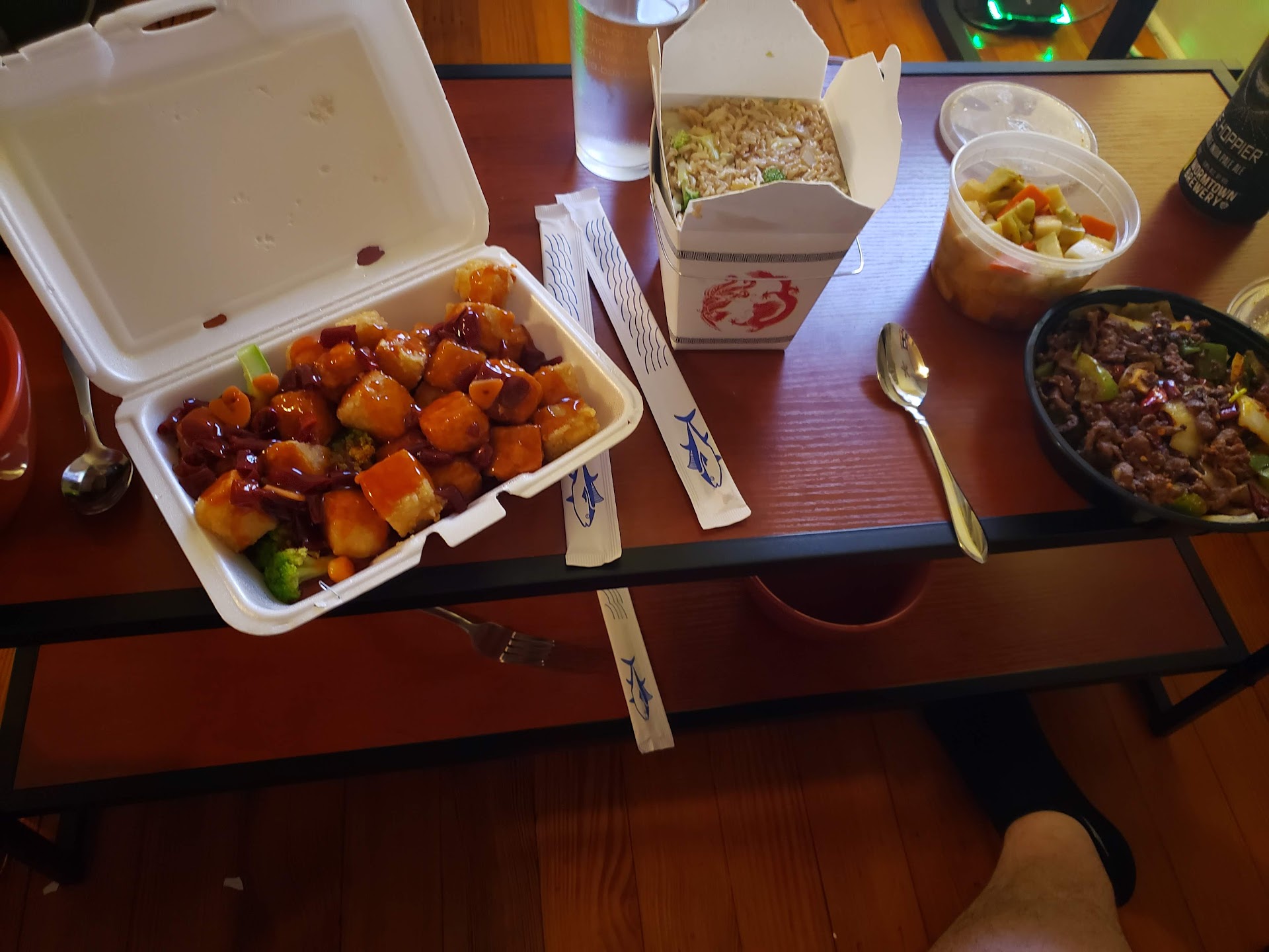 The portions seemed decent. The food was good. We got general gao's tofu, veggie fried rice, fried lamb w cumin, and pickled veggies. The tofu is lightly fried and doesn't really taste like tofu, its very airy. The fried rice was great - lightly seasoned and not swimming in oil. The fried lamb has a lot of seasoning so be prepared. Both the tofu and lamb had hot spicy pepper pieces but if your not a fan of spicy you can just eat around it and you won't get the extra kick. By the way the fried lamb is a szechuan dish so it's supposed to be spicy. The pickled veggies didn't have a WOW factor, they were okay. Not...