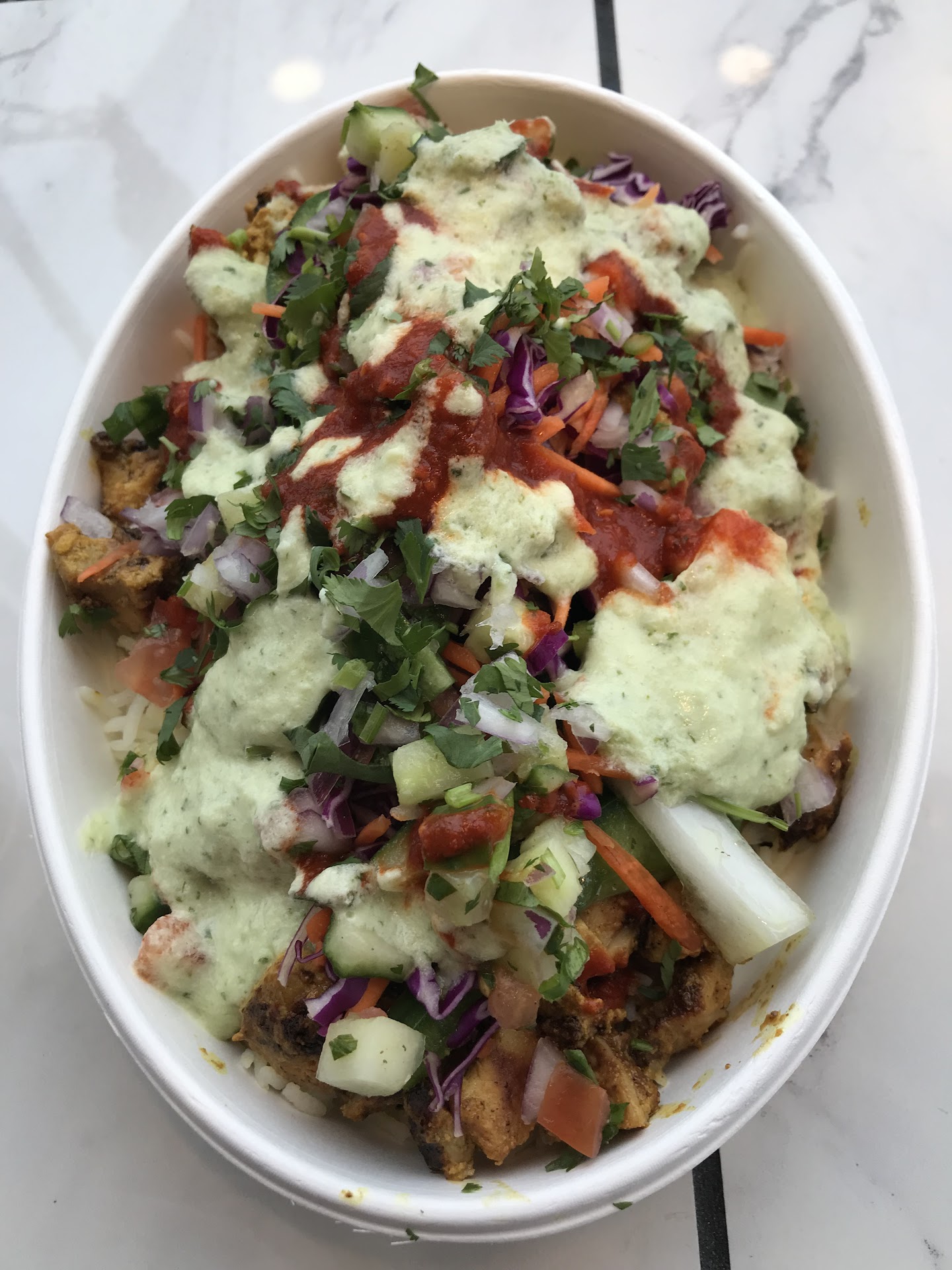 Read morei love south asian food and i am so happy there's a new spot in federal hill for it. i ordered the chicken tikka bowl and the mini samosas. the place is sooo clean and i love their decor like their little high top seating has marble counters. they were playing covers of my favorite bollywood music and it created a whole mood. the food tastes so fresh and so seasoned but because they build your bowl with you, you can alter spice and taste levels. the servers are SO kind. they loved taking questions and sharing more information about their kitchen set-up and how they make everything from scratch. you can see them cooking while you order and eat. it's so gluten friendly too. this is a great place to bring friends with different dietary tastes or needs. i put both kinds of rice and salads on my bowl, and picked the cilanter coolada sauce which tastes like mint parsley chutney. the mini samosas were the perfect crunchy accompaniment and sooo flavorful in their little bites. the tamarind chili is like a sweet and spicy sauce to dip into. i can't wait to come back and also to cater them for my college...