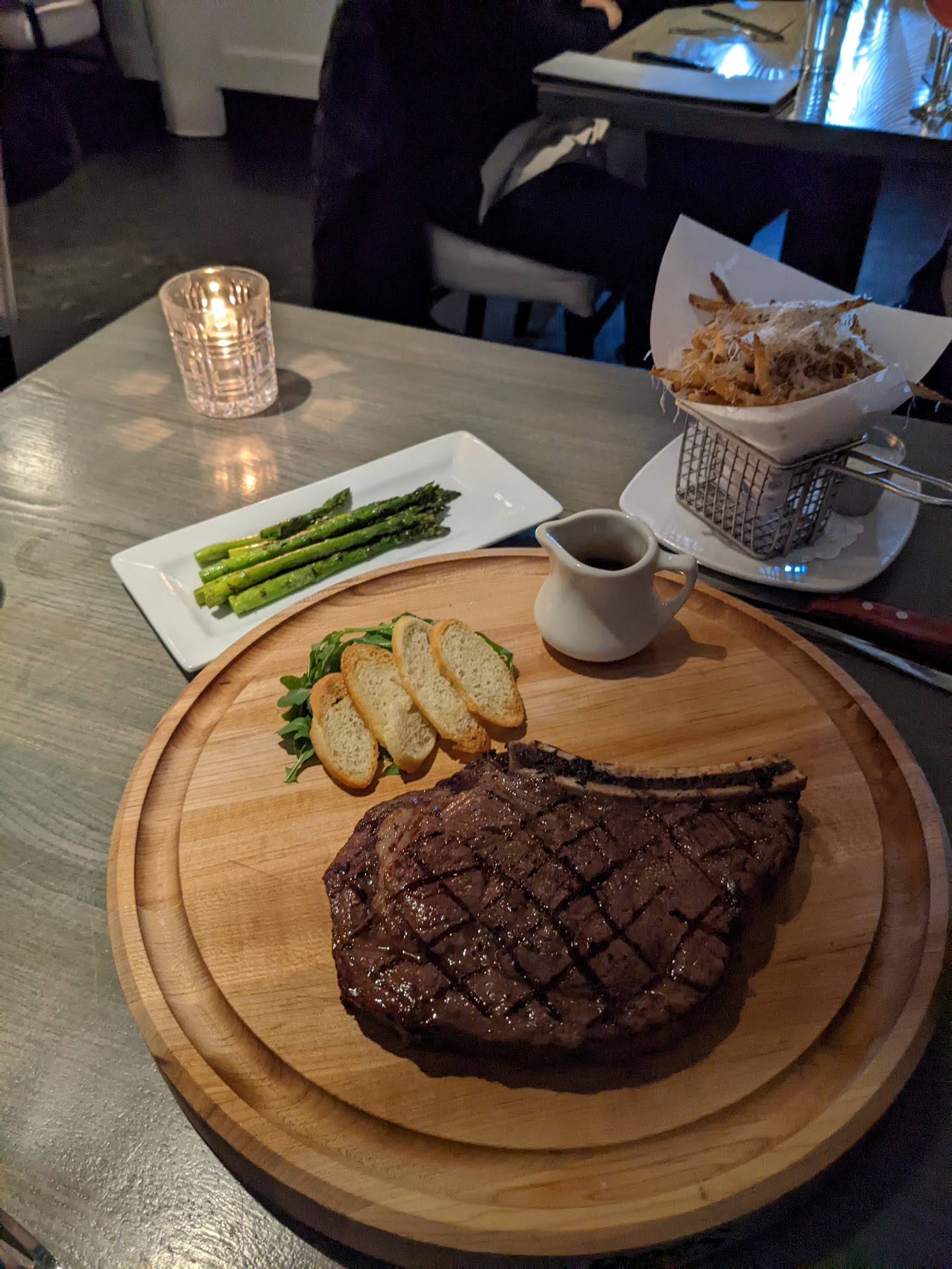 Read moreDuck eggs rolls- tasted like spring rolls from local Chinese spot. No duck to be found. âYa itâs groundedâ. Oysters, calamari, squash soup was very good. The waitress was friendly but atrocious at the skills necessary to be a server. We had to ask for bread. Meal: short rib with risotto and spinach. Risotto and spinach was hot and my short rib was COLD. My partners short rib was room temp. It was obvious the short ribs were precooked. Told the manager, he took mine to reheat it. Didnât offer to take my partners. That plate was back in less than 2 minutes. Did not replate it. It went from cold to luke warm. I pointed it out to the waitress. This time they actually heat it up, still kept it on the same plate đ. They never offered to warm my partners. I guess they expected one person to eat their food while the other sat and watched and not each TOGETHER. When manager saw the plate come to the table for a 3rd time he came to say sorry and asked if we wanted a drink on the house. Gracefully accepted. He brought 1 shot to the table. (Table of 2 ppl, so far we had 3 drinks and 1 shot before our entree came. I guess he assumed we werenât big drinkers) Just ignorant. The short rib with risotto spinach was really good once warmed up 3x. My partner never ate theirs since it went from room temp to cold while waiting for mine to bounce back and forth from the kitchen. Then they brought out a cake for me (my partner brought the cake in earlier for me as a surprise) candles was nice. They dropped it off and kept in moving. No plates, no silverware, just negative vibes. At this point we asked for the manager, stunned to see it was the guy who returned my cold to Luke warm short rib in 60 seconds. He said he was embarrassed and apologized. He said he would remove the cake cutting fee. What fee when there was not even a knife to cut ? Waitress finally reappeared and took zero accountability. âHe wanted the cake to be a surpriseâ. At this point Iâm wondering if something was wrong with this girl bc how is your excuse for not delivery plates and silverware bc the cake was a surprise. This girl carried a cake to the table with a candle in it and did not then proceed to bring a knife, plates or napkins and was not able to process where she went wrong. The manager ended up cutting her off because she was only seeming more incompetent with each sentence. Anyway, manager was nice enough to take $30 off the bill. He said he was embarrassed over everything that happened and then took $30 off. You have a lot to be embarrassed about. Awful experience. For reference - youâll see he took $5 off two entrees and then there is the $20 off for the shot he offered. So he remedied for our spend $10. Imagine having to reheat a guests entree three times and taking $5 off the...