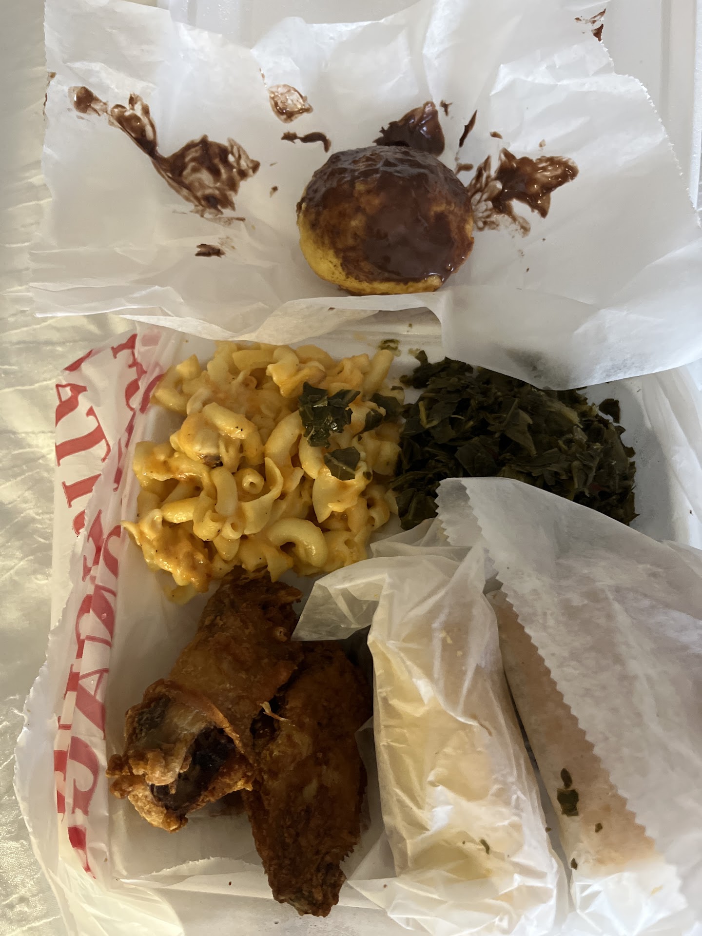 Love the food here! Craved this place every day when i was pregnant and not pregnant. I have been going to eat there for almost 8 years. Do not have not 1 negative thing to say about this restaurant. Very small restaurant for a quick bite in or for take out. Small parking lot but there is parking. The customer service is amazing, the man that owns the place is a sweetheart and really cares about his customers.The food is always fresh and cooked by only him! Great portions served, can feed 2 with one plate. Well worth your money. The pricing is $ not expensive. The food options are all delicious it's hard to choose. It's all southern cooking (sweet potatoes/yams , mashed potatoes, ribs, fried chicken, corn bread, greens, Mac & Cheese) and more. Would definitely recommend this place...