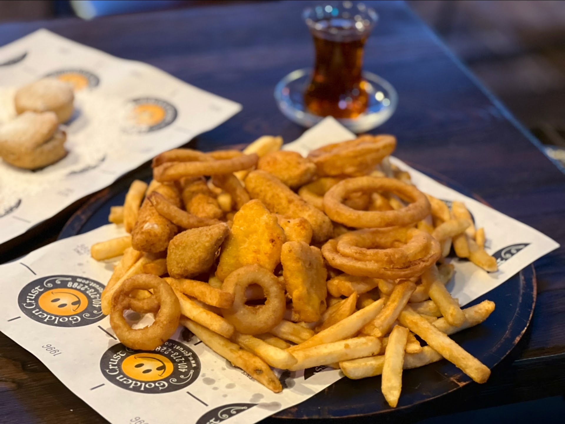 lol I believe they made an error because their top selling dish is listed as āDeep Fried Doo Dooā and I think thatās about the fried Oreos. The curly haired staff girl was really nice. All of them were actually. She was just our main cashier/server. But yes; this is just the updated Golden Crust Pizza place but they did make it fancier and nice in here so it is worth checking out if...