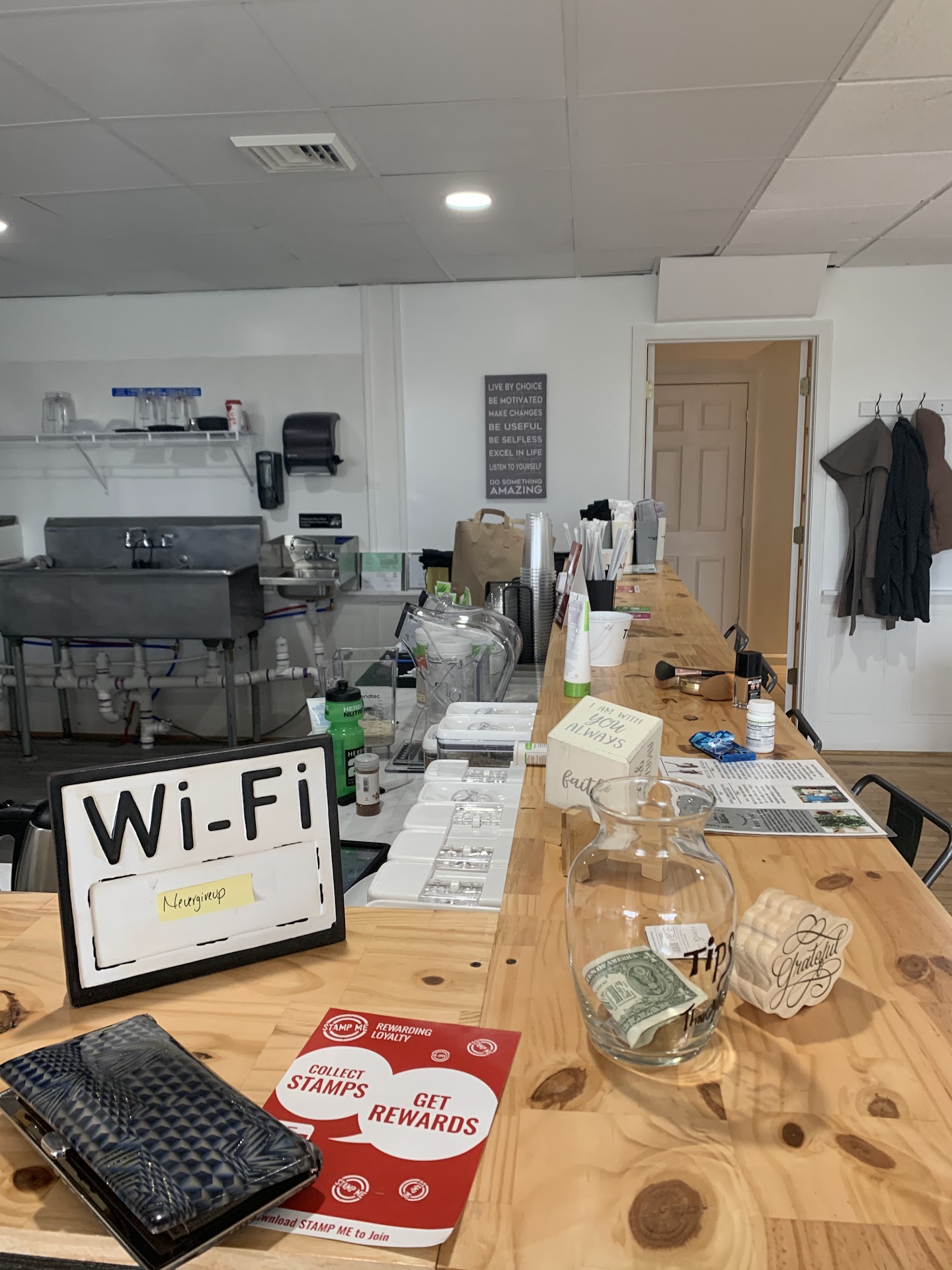 Come here for a huge range of smoothies and teas. Their name is confusing for sure, but I can confirm you can buy reasonably priced drinks. Im a tough customer for smoothies as I can’t have tons of sugar and I hate all artificial sweeteners, even stevia. the two I tried (swamp something and mean green) were very sweet and artificial in flavor. My teenage son liked them so it’s a matter of taste. They have about twenty options to choose from and should offer nutrition data on each concoction. That’s usually how I steer myself towards the right choices at similar places. On the plus side it’s an airy space with super...
