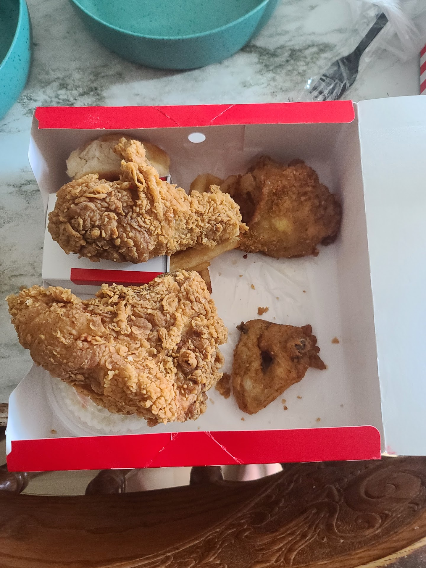 Ā Ā Ā Read moreI ordered a 3 piece order with fries and macaroni, a chicken sandwich and an order of popcorn chicken with fries and soda. Left and came back 3 minutes later because I was one of the fries. The person at the window which was probably new made me show him and give him what I bought except the sodas and sandwich. Because I believe he did not believe I would come back after I spent over 25 dollars on my orders for the fries I was missing. His supervisor had my order inside for like 2 minutes trying to decide what to do and telling the new guy that next time to tell customers to go inside if they are missing anything. If I was sick with anything contagious him and her would have shared my germs with everyone that bought anything after me in the drive thru. I have never in my life seen a drive thru do that because of their own stupidity. If I could rate zero to the supervisor I would....