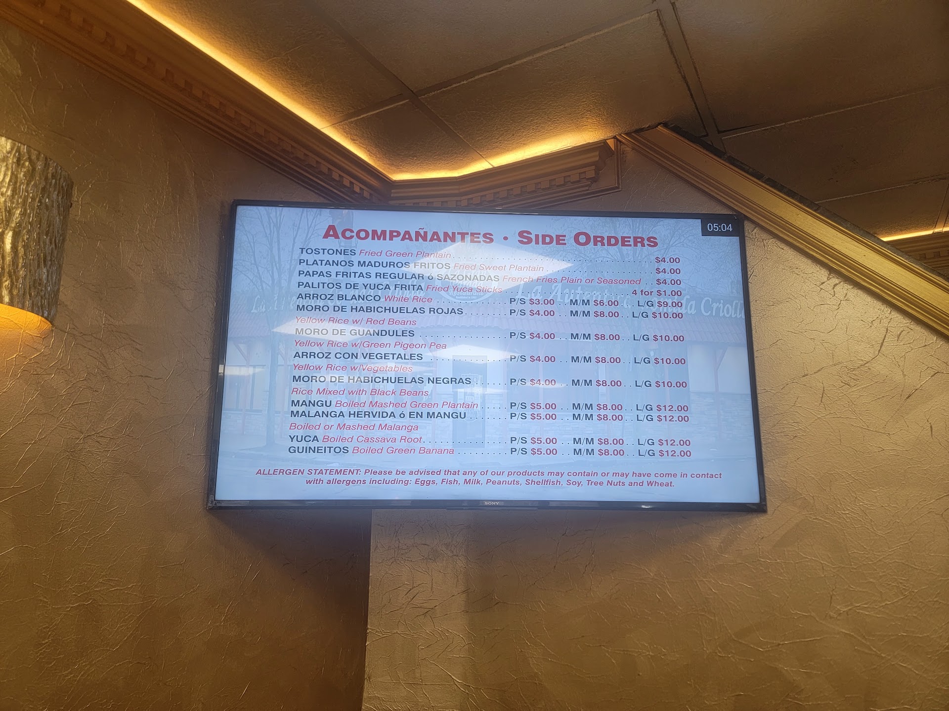 Read moreFirst, I had a minimal wait (5 mins)on a Wednesday at about 5:30pm. The service was friendly. I pointed to a rice & my server told me the name of it & explained all the ingredients in the ‘Chofán’ rice: chicken, shrimp, longaniza (a particular sausage that I hadn’t eaten in years!), salchichón/salami (similar to a summer sausage), peas, corn, AND fried sweet plantains—-Whoa (I’ve never had sweet plantains in a rice dish). When she said platano maduro- it was like “You had me at hello!” She asked what size I wanted “medium or large?” I selected medium. She asked if I wanted a salad and gave me 3 choices- I went all in and got the potato salad and added 3 BBQ wings. No drink, my total was $16 & change (?) When I ordered the wings my server noted that there was meat in the rice so adding more meat would be extra $. I was not leaving without some of those wings and I’m glad I didn’t- they were delicious. The potato salad was good. My favorite part of the chofán rice was the chunks of sweet plantain. The chicken was dry and the salami/salchichón was extremely dry, a bit burned. The shrimp was just ok. The rice itself was very tasty which didn’t surprise me given all the flavorful ingredients. This rice dish must be amazing when it’s right out of the big pot it’s made in. Overall, this restaurant offers A LOTA of authentic Dominican/Criolla food. Definitely worth a visit. I used to go often when it was a smaller joint. I’m no longer in the area often, but when I am its hard not to stop in. It’d been way too long since I’d been here. I’ll have to visit soon with the kids-although I can hear them now saying how their Mamá (grandma) & aunts cook way better. Well, I don’t, so...