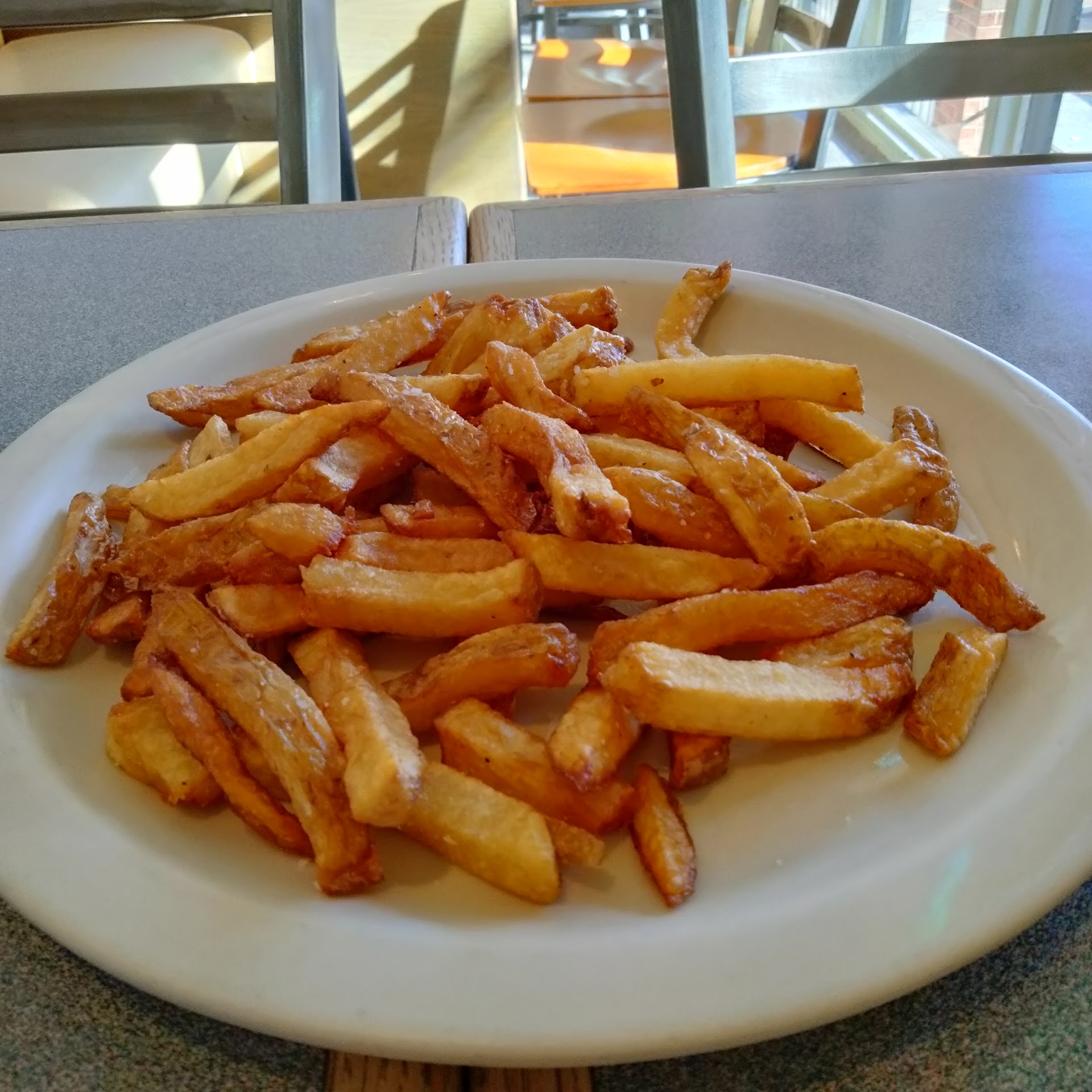Read moreFood is on the pricy side, and mostly just OK. The cookies are giant and their salads are big too. I got three salads from one! However, the homemade fries needed salt big time. Hummus and veggie sandwich was disappointing. Hummus was grainy with a lot of whole chickpeas. I prefer smooth hummus, not chunky. And it was spread on so thick the bread was falling apart. I ended up scraping off enough for another use. Veggies were super skimpy, cucumber on one side, tomato on another. You should get a bite of everything together in a sandwich. I ended up adding my own tomato...