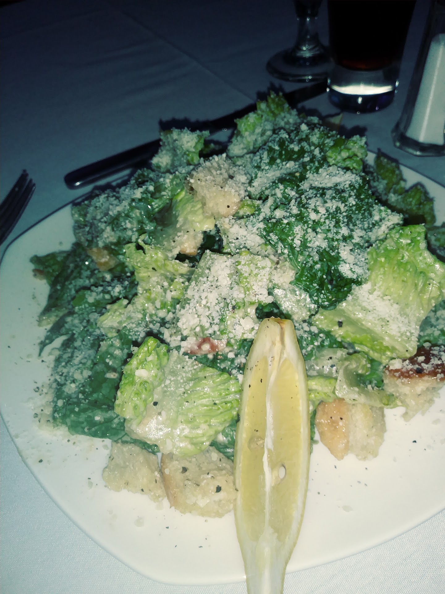 My steak was ok and cooked as I had ordered. A bit on the tough side, like the chef did not let it rest properly. The pea greens on top as garnish had spots of wet decay, which didn't surprise me, because my wife's Caesar salad was half wilted. The portions were generous, but the Calamari, Risotto balls, and truffle french fries could have been Sysco food easily. The waiter tried and meant well. He was the only one in the place, so, good thing they were not busy.
