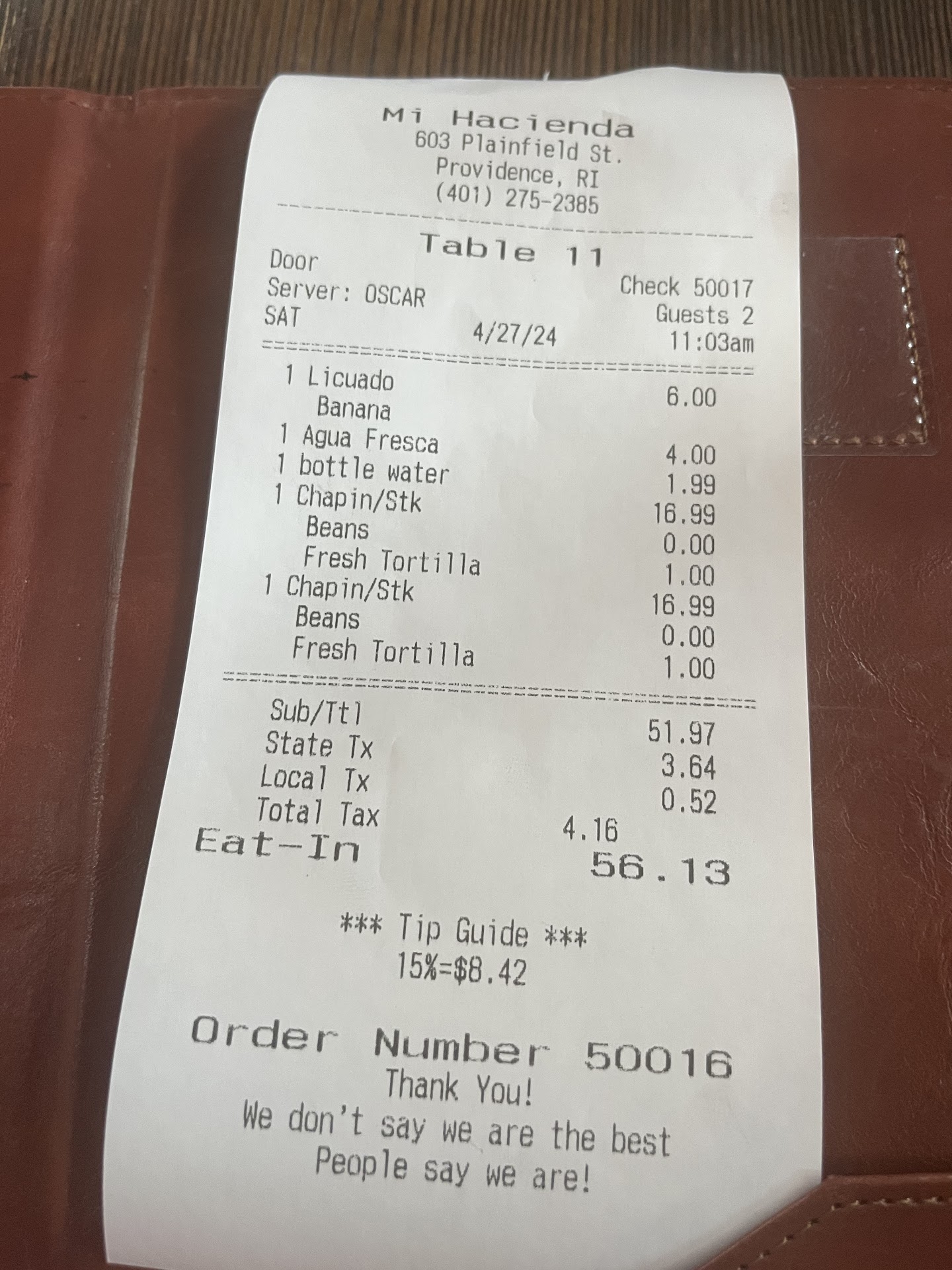 Read moreMaddy and Alex were in RI for a wedding so obviously my really cool girlfriend and I were gonna get a meal with them. As a wise sage once said, family comes first. We went for brunch and were blown away by their Mexican and Guatemalan breakfast offerings! We got the Chapin con chorizo, chilaquiles verde (Alex and I both ordered that), and huevos divorciados, and there wasn’t a drop left. Ok ok I’m guilty of eating my really cool girlfriend’s last bite of eggs. Sharing is caring! Anyway we’ll totally be back to keep exploring the menu and are excited to try dinner there as well! Peace, love, and have a sweet...