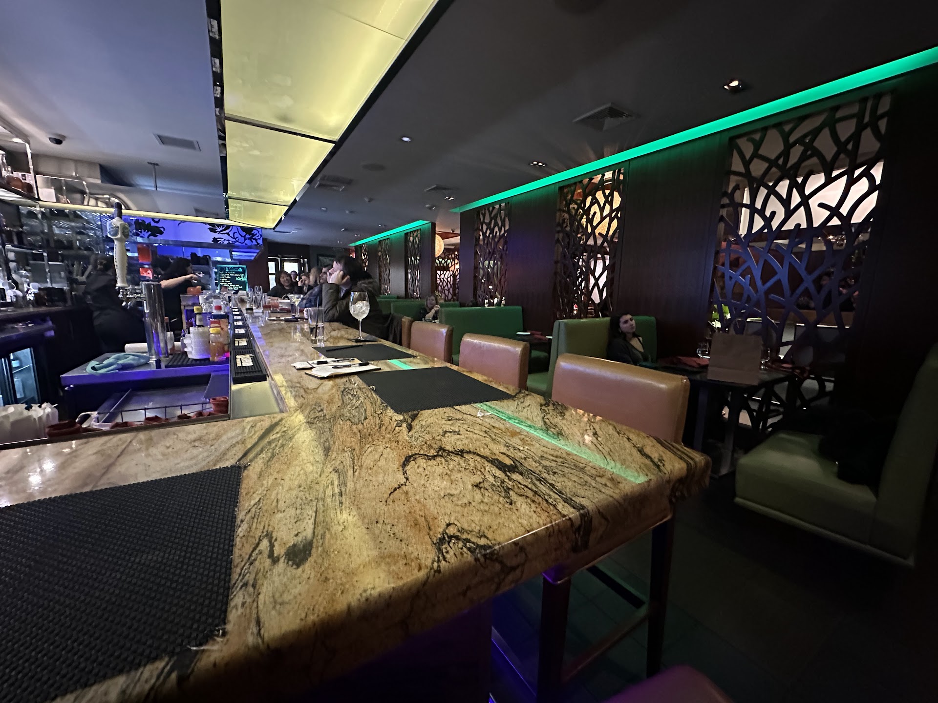 Read moreThis place can get a 5* in my opinion. The waiter was excellent in explaining the sushi menu as I am a novice at elegant sushi restaurants. This restaurant is either lucky to have such a good knowledgeable staff or they hire accordingly. The food was fresh and excellent. It's a small off the main Ave with no parking restaurant but most in the area are like that. For the price of the food around $85 for two people with two alaochol beverages (1 each) some would expect a perfectly clean floor and the $1 dollar-store plastic wall hooks they had seemed a little cut corner but overall it was a nice place and experience. I'm not complaining but in order to get 5* you need to be 5. This is a cozy little elegant corner restaurant. I loved the leather couches they had for booth seating and the presentation of the food was wonderful (I took a picture for Facebook). For me personally not being a fancy restaurant connoisseur it was 5 but I don't want to mislead anyone who is looking the taj mahal, my conservative opinion is 3-4. I rated 4 for the waiter and my experience here. Food in my unprofessional opinion couldn't have...